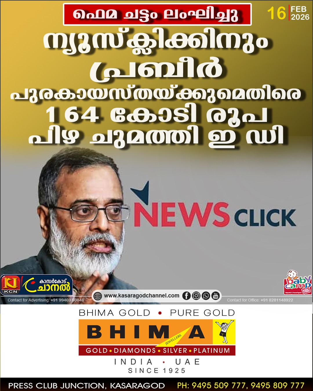 ഫെമ ചട്ടം ലംഘിച്ചു; ന്യൂസ്ക്ലിക്കിനും പ്രബീര് പുരകായസ്തയ്ക്കുമെതിരെ 164 കോടി രൂപ പിഴ ചുമത്തി ഇ ഡി