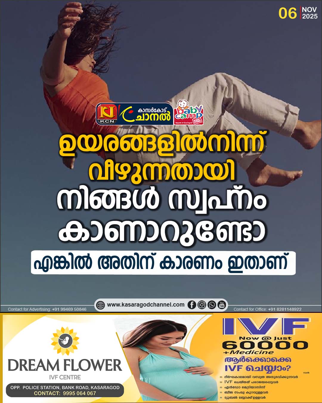 പകുതി ഉറക്കത്തിലായിരിക്കുമ്പോള് പാറക്കെട്ടിന് മുകളില്നിന്ന് താഴേക്ക് വീഴുന്നതായോ, ആകാശത്തില്നിന്ന് വീഴുന്നതായോ, കുഴിയിലേക്ക് വീഴുന്നത് പോലെയൊ ഒക്കെ തോന്നിയിട്ടുണ്ടോ?. ആ സമയത്ത് ശരീരം വിറയ്ക്കുക, ഹൃദയമിടിപ്പ് വര്ധിക്കുക എന്നീ ലക്ഷണങ്ങളും അതിനോടൊപ്പം ഉണ്ടാകും. ഇത്തരം അനുഭവങ്ങള് ഉണ്ടായിട്ടുള്ളവര്ക്ക് ആ സ്വപ്നത്തിന് പിന്നിലെ കാരണം എന്താണെന്ന് അറിയാന് ആഗ്രഹമുണ്ടോ?.