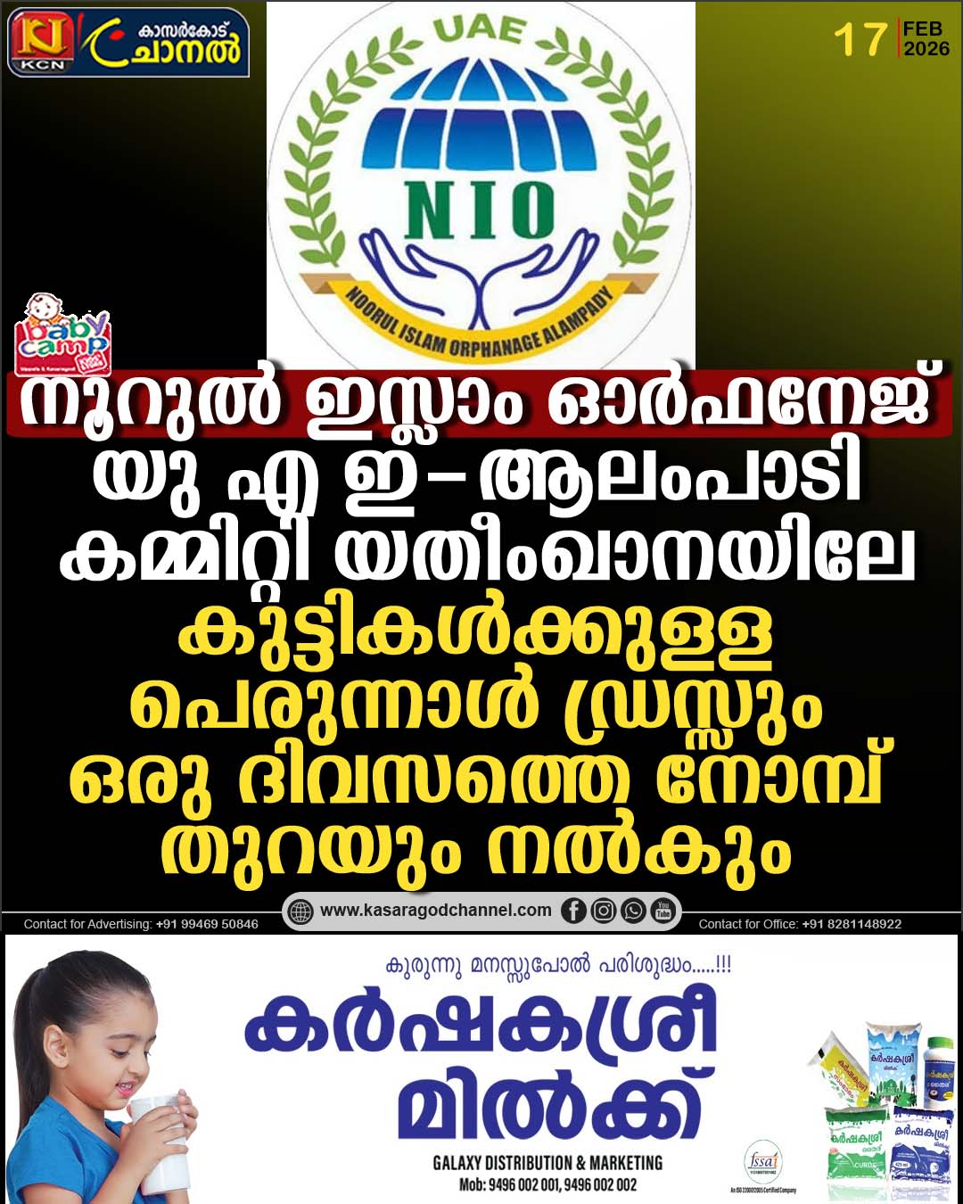 ആലംപാടി :നൂറുല് ഇസ്ലാം ഓര്ഫനേജ് യു എ ഇ ആലംപാടി കമ്മിറ്റി യതീംഖാനയിലേ കുട്ടികള്ക്കുള്ള പെരുന്നാള് ഡ്രസ്സും ഈ വരുന്ന റമദാനില് യതീംഖാനയിലുള്ള കുട്ടികള്ക്കുള്ള ഒരു ദിവസത്തെ നോമ്പ് തുറയും നല്കാന് തീരുമാനിച്ചു.കഴിഞ്ഞ ദിവസം എന് ഐ ഓ -യു എ ഇ കമ്മിറ്റി പ്രസിഡന്റ് കാര് മുഹമ്മദിന്റെ അധ്യക്ഷതയില് ഓണ്ലൈലില് ചേര്ന്ന പ്രവര്ത്തക സമിതി യോഗം എന് ഐ ഓ – യു എ ഇ അദ്വൈസറി അംഗംവും യുഎഇ ആലംപാടി ജമാഹത്ത് കമ്മിറ്റി ജനറല് സെക്രട്ടറിയുമായ
