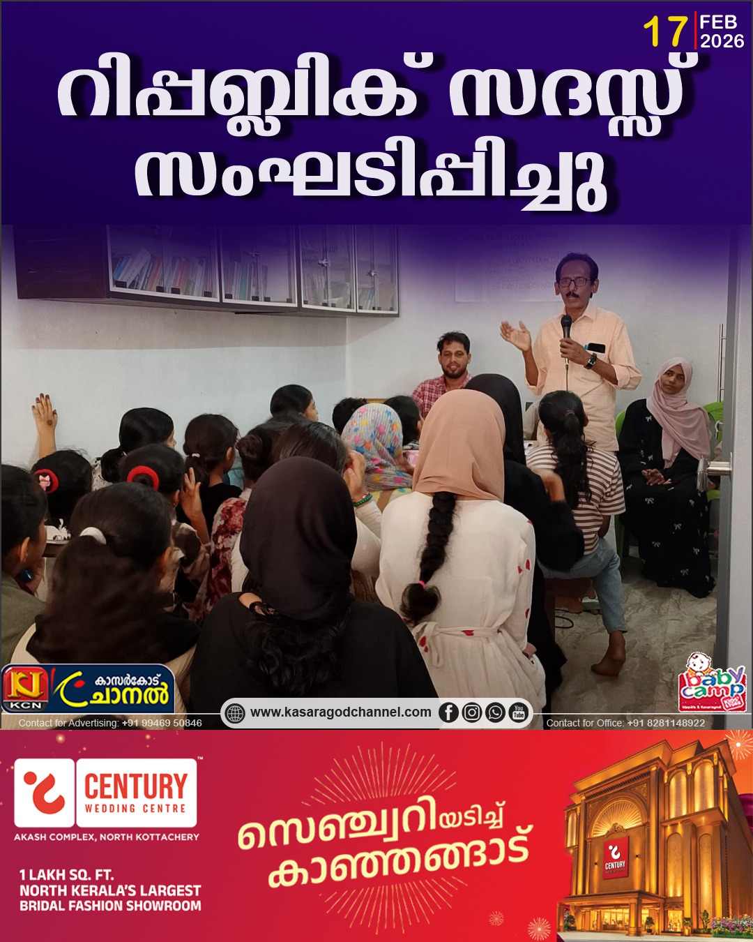 റിപ്പബ്ലിക് സദസ്സിന്റെ ഭാഗമായി ബാലവേദി കുട്ടികള്ക്ക് ചിത്ര രചന മത്സരവും,ക്വിസ് മത്സരവും സംഘടിപ്പിച്ചു.
