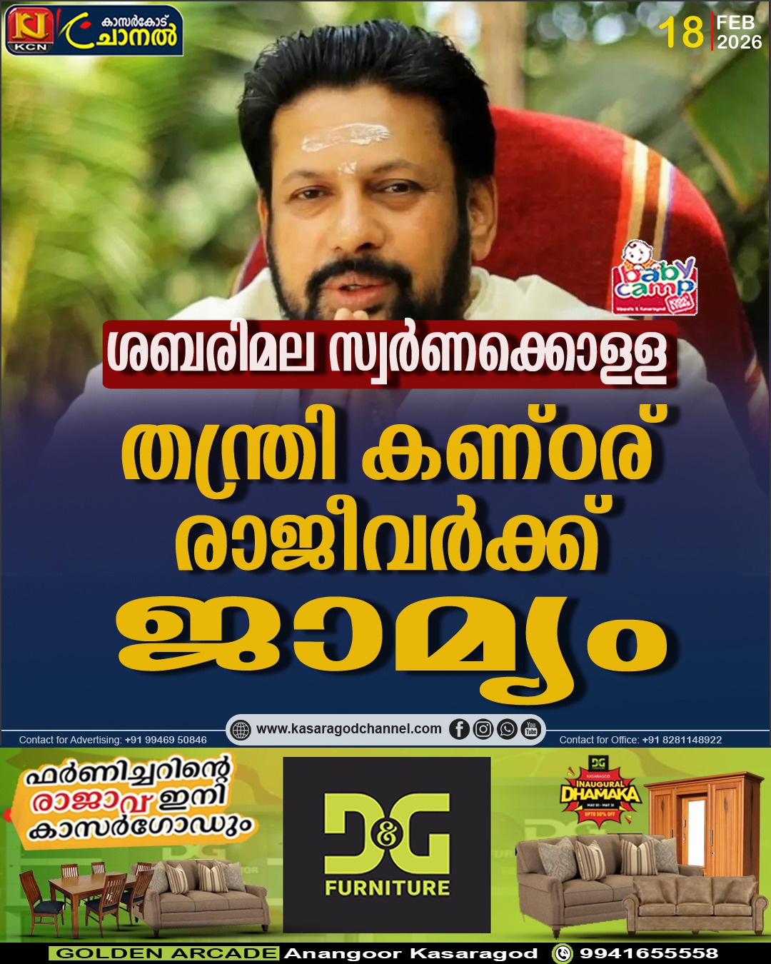 ഉണ്ണികൃഷ്ണന് പോറ്റിക്കും വാസുവിനും മുരാരി ബാബുവിനും പിന്നാലെയാണ് തന്ത്രി കണ്ഠര് രാജീവര്ക്കും ജാമ്യം ലഭിക്കുന്നത്. ജാമ്യം കിട്ടുന്ന ആറാമത്തെ പ്രതിയാണ് തന്ത്രി. ജനുവരി 9നാണ് തന്ത്രി അറസ്റ്റിലായത്. 90 ദിവസം ആകുന്നതിന് മുന്പ് ജാമ്യം കിട്ടുന്ന രണ്ടാമത്തെ പ്രതിയാണ് തന്ത്രി. നേരത്തെ മുന് അഡ്മിനിസ്ട്രേറ്റീവ് ഓഫീസര് എസ് ശ്രീകുമാറിനും ജാമ്യം ലഭിച്ചിരുന്നു.