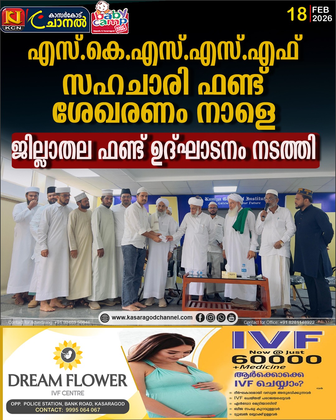 സമസ്ത കേരള ജംഇയ്യത്തുല് ഉലമ പ്രസിഡണ്ട് സയ്യിദ് മുഹമ്മദ് ജിഫ്രി മുത്തുക്കോയ തങ്ങള്ക്ക് ഫണ്ട് കൈമാറി സമസ്ത സഹകാരി ഫൈസല് പച്ചക്കാട് ഉദ്ഘാടനം നിര്വ്വഹിച്ചു. എസ്.കെ.എസ്.എസ്.എഫ് കാസര്കോട് ജില്ലാ ജനറല് സെക്രട്ടറി ഇര്ഷാദ് ഹുദവി ബെദിര ആമുഖ പ്രഭാഷണം നടത്തി. സമസ്ത മാനേജര് മോയിന്കുട്ടി മാസ്റ്റര് അധ്യക്ഷത വഹിച്ചു. സയ്യിദ് സാബിഖ് അലി ശിഹാബ് തങ്ങള്