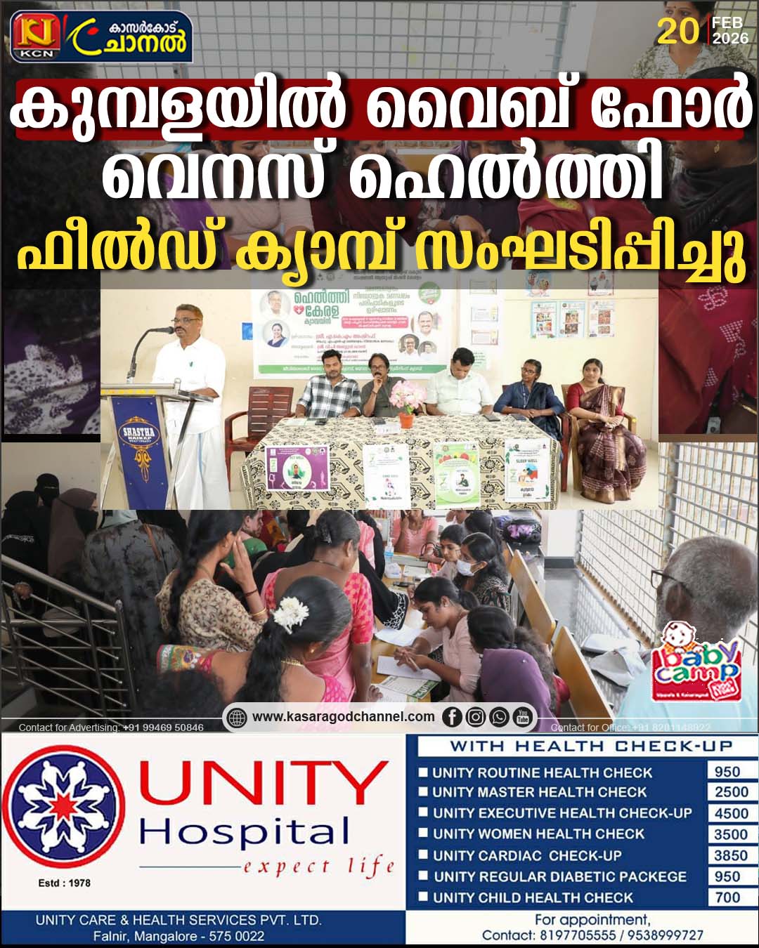 ഫോട്ടോ: ആരോഗ്യവകുപ്പിന്റെ’വെനസ് ഹെല്ത്തി ഫീല്ഡ് ക്യാമ്പ്”കുമ്പള ഗ്രാമപഞ്ചായത്ത് പ്രസിഡണ്ട് വി പി അബ്ദുല് ഖാദര് ഹാജി ഉദ്ഘാടനം ചെയ്യുന്നു.