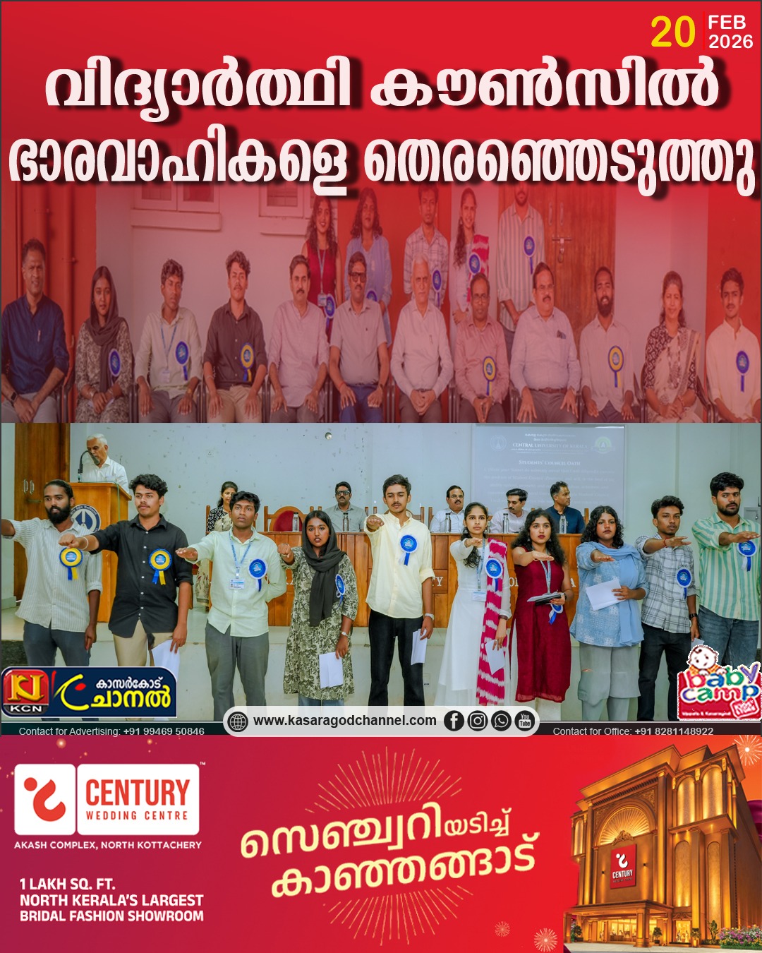 കേരള കേന്ദ്ര സര്വകലാശാല: വിദ്യാര്ത്ഥി കൗണ്സില് ഭാരവാഹികളെ തെരഞ്ഞെടുത്തു
