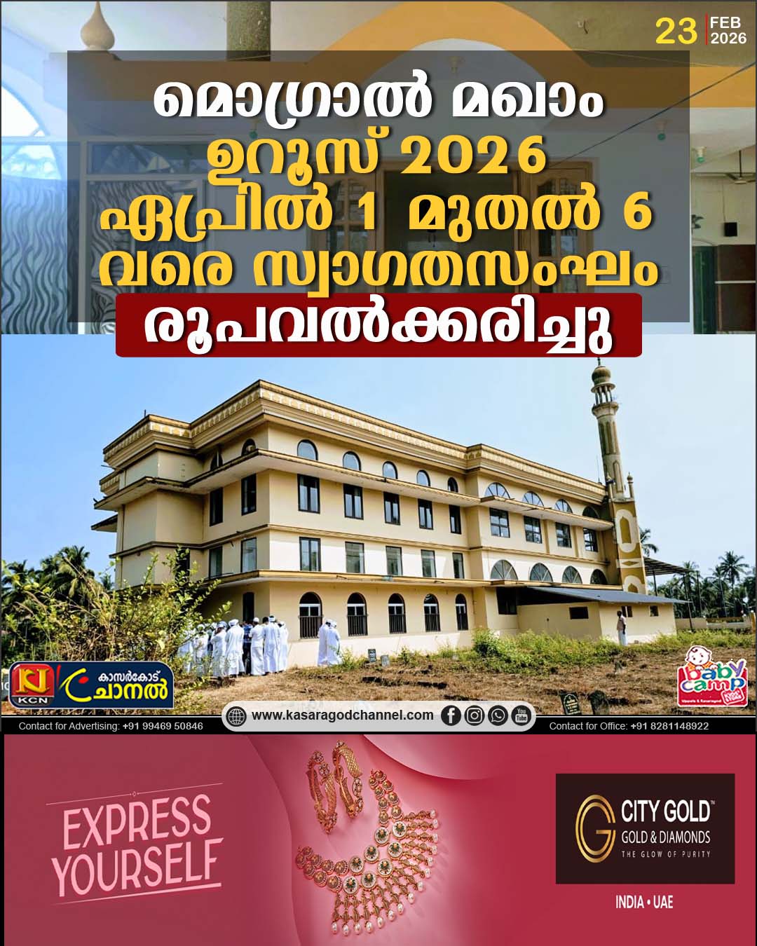 മൊഗ്രാല്.മൊഗ്രാല് കടപ്പുറം വലിയ ജുമാമസ്ജിദ് അങ്കണത്തില് അന്ത്യവിശ്രമം കൊള്ളുന്ന വലിയുള്ളാഹി അറബി ഹാജി തങ്ങള് മഖാം ഉറൂസ് 2026 ഏപ്രില് 1 മുതല് 6 വരെയായി സംഘടിപ്പിക്കാന് ജമാഅത്ത് കമ്മിറ്റിയുടെയും,മഹല്ല് നിവാസികളുടെയും സംയുക്ത യോഗം തീരുമാനിച്ചു.