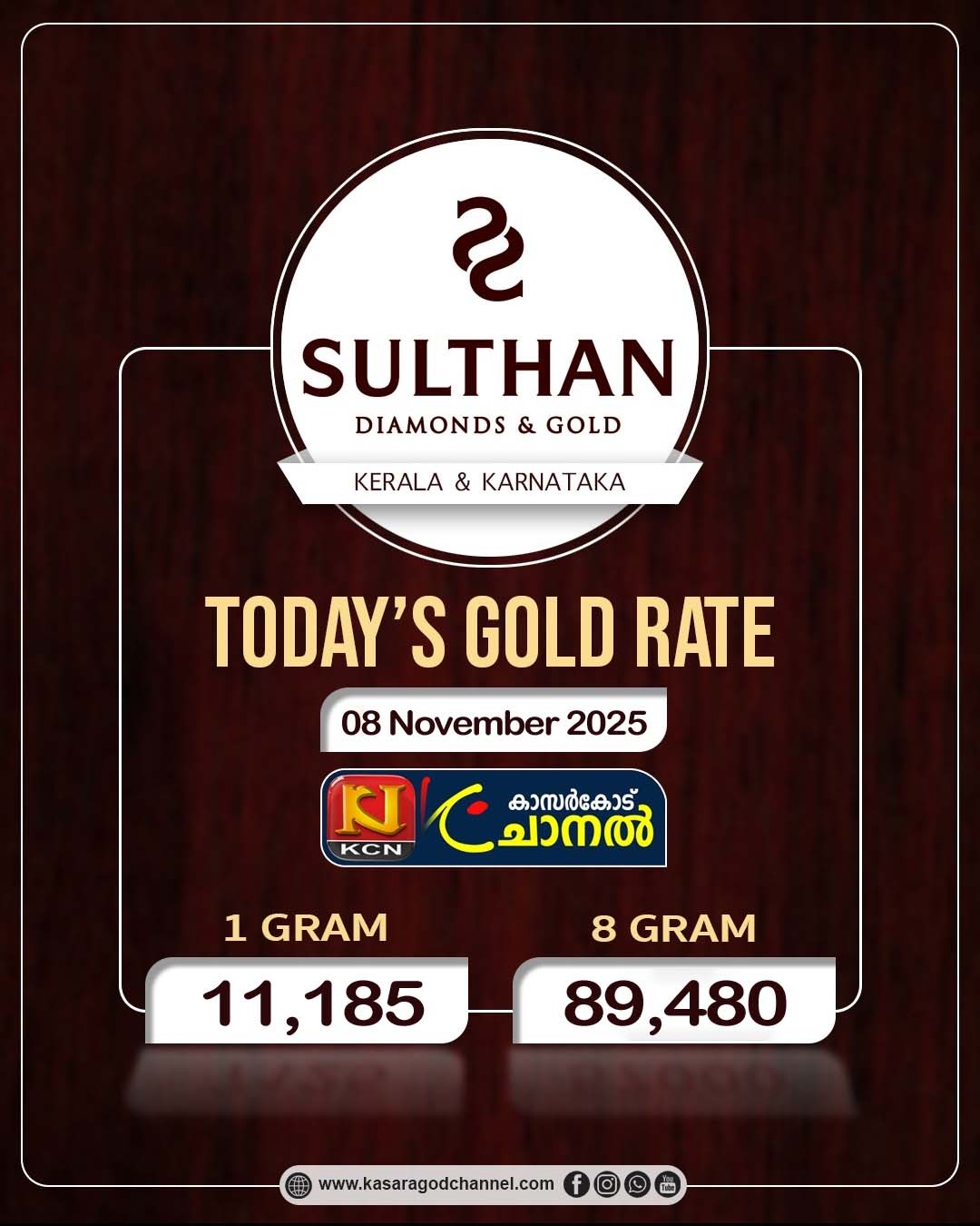 സ്വര്ണ്ണ വിലയില് മാറ്റമില്ലBy kcnchannel / November 8, 2025 സംസ്ഥാനത്ത് സ്വര്ണ്ണ വില മാറ്റമില്ലാതെ തുടരുന്നു. ഗ്രാമിന് 11,185 രൂപയും പവന് 89,480 രൂപയുമാണ് ഇന്നത്തെ വില