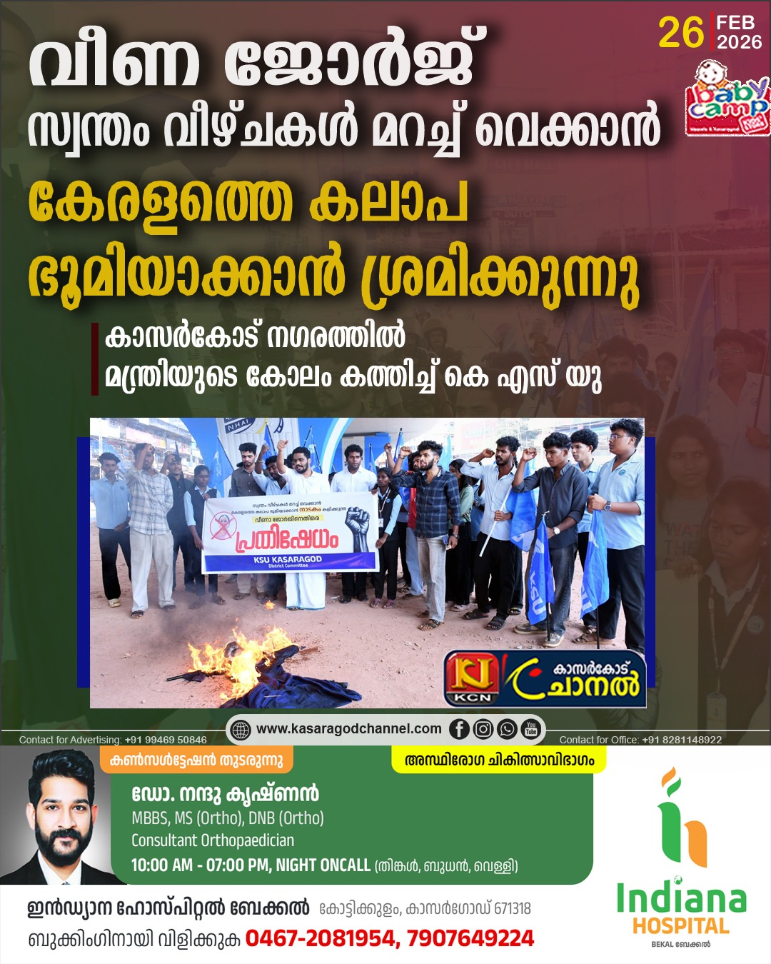 കാസര്ഗോഡ് നഗരത്തില് മന്ത്രിയുടെ കോലം കത്തിച്ച് കെ എസ് യു