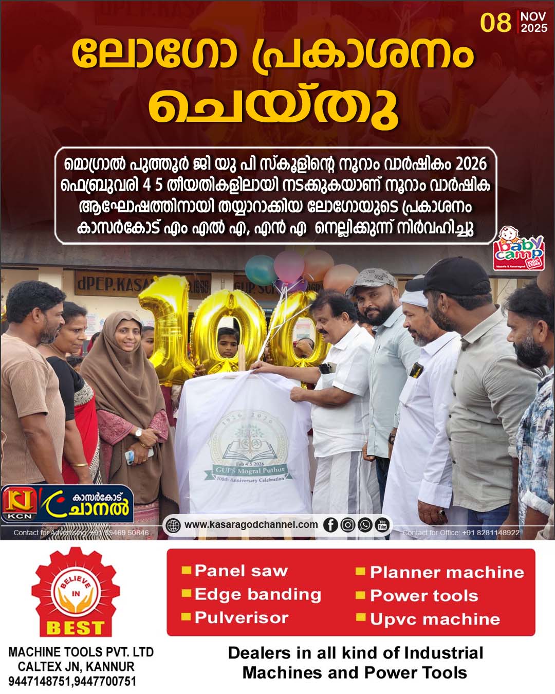 മൊഗ്രാല് പുത്തൂര് ജി യു പി സ്കൂളിന്റെ നൂറാം വാര്ഷികം 2026 ഫെബ്രുവരി 4 5 തീയതികളിലായി നടക്കുകയാണ് നൂറാം വാര്ഷിക ആഘോഷത്തിനായി തയ്യാറാക്കിയ ലോഗോ യുടെ പ്രകാശനം കാസര്ഗോഡ് എം എല് എന് എ നെല്ലിക്കുന്ന്നിര്വഹിച്ചു.മൊഗ്രാല് പുത്തൂര് ഗ്രാമപഞ്ചായത്ത് പ്രസിഡണ്ട് അഡ്വക്കേറ്റ് സമീറ ഫൈസല് ഗ്രാമപഞ്ചായത്ത് വൈസ് പ്രസിഡണ്ട് മുജീബ് കമ്പാര് സ്കൂള് എച്ച് എം വിമല കുമാരി ടീച്ചര് പിടിഎ പ്രസിഡണ്ട് സിറാജ് മുപ്പ പിടിഎ വൈസ് പ്രസിഡണ്ട് രമേശ് എസ് എം സി ചെയര്മാന് കുഞ്ഞിക്കോയ തങ്ങള് ബഷീര് കെ ടി ഹാരിസ് കമ്പാര് സമീര് ബള്ളൂര് ഇഖ്ബാല് ചൗക്കി സിദ്ദീഖ് കമ്പാര് ഹാരിസ് സാക്കിര് മജീദ് ഹനീഫ് മറ്റു സ്കൂള് ടീച്ചേഴ്സ് തുടങ്ങിയവരൊക്കെ ചടങ്ങില് പങ്കെടുത്തു