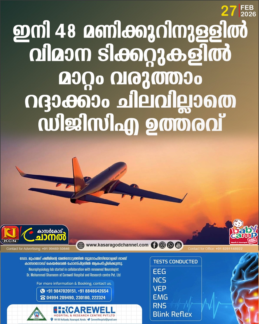ഇനി ഫ്ലൈറ്റ് ടിക്കറ്റ് ബുക്ക് ചെയ്ത് 48 മണിക്കൂറിനുള്ളില് അധിക ചാര്ജ് ഈടാക്കാതെ ടിക്കറ്റില് മാറ്റം വരുത്താനും റദ്ദാക്കാനും കഴിയും. ഡിജിസിഎയാണ് ഇത് സംബന്ധിച്ച ഔദ്യോ?ഗിക അറിയിപ്പ് ഫെബുവരി 24-ന് പുറപ്പെടുവിച്ചത്. വിമാന ടിക്കറ്റ് ബുക്ക് ചെയ്ത ശേഷം മാറ്റം വരുത്തുകയോ റദ്ദാക്കുകയോ ചെയ്യുമ്പോള് വിമാന കമ്പനികള് പണം ഈടാക്കുന്നു എന്ന് വ്യാപക പരാതി ഉയര്ന്ന സാ?ഹചര്യത്തിലാണ് ഡിജിസിഎയുടെ ഈ നീക്കം. ഡിജിസിഎയുടെ ഈ പുതിയ നിയമം മാര്ച്ച് 26 മുതല് പ്രാബല്യത്തില് വരും.