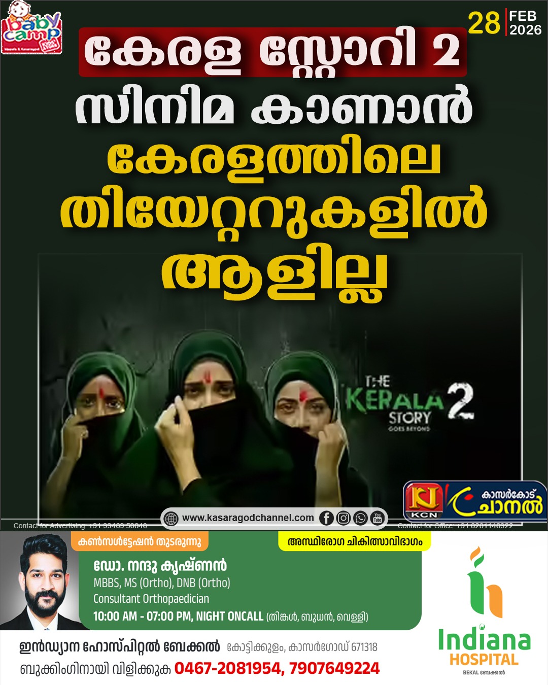 നിലവില് എറണാകുളത്ത് ഏഴ് തിയറ്ററുകളിലാണ് കേരള സ്റ്റോറി 2 പ്രദര്ശിപ്പിക്കുന്നത്. കൊച്ചിയില് ആദ്യ ഷോ രാവിലെ 10.30ന് നടക്കും. ഷോ നടക്കുന്ന ജില്ലയിലെ പാന് സിനിമസ് തിയറ്ററില് ആകെ ബുക്ക് ചെയ്തത് 6 പേര് മാത്രമാണ്. പിവിആറില് രണ്ടുപേരാണ് ബുക്ക് ചെയ്തത്. കൊച്ചിയിലെ പ്രമുഖമായ ഷേണായി തിയറ്ററിലും ആളുകള് എത്തിയിട്ടില്ല. കേരളത്തില് തണുപ്പന് പ്രതികരണം ലഭിച്ചിരിക്കുന്ന സാഹചര്യത്തില് സംസ്ഥാനത്തിന് പുറത്ത് സിനിമയ്ക്ക് കിട്ടുന്ന റെസ്പോണ്സ് എന്താണെന്ന് വരും മണിക്കൂറുകളില് അറിയാനാകും.