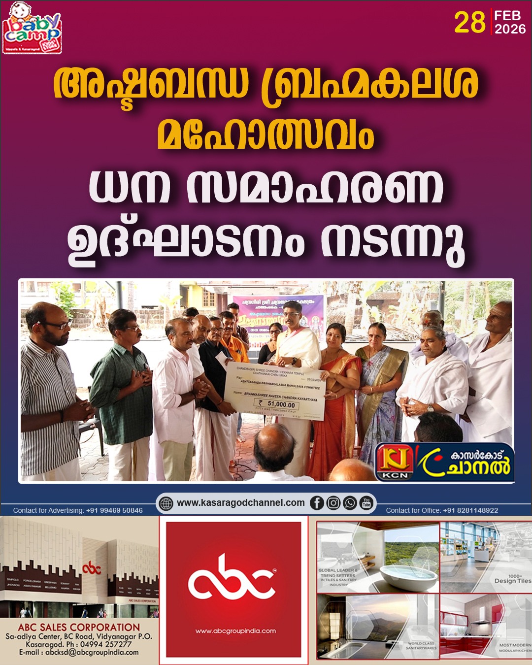 അഷ്ടബന്ധ ബ്രഹ്മകലശ മഹോത്സവംധന സമാഹരണ ഉദ്ഘാടനം നടന്നു.