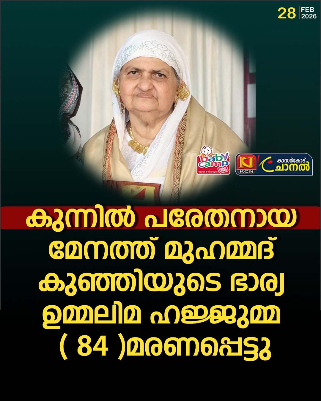 പരേതരായ അബ്ദുല് കാദര് കല്ലങ്കൈ – ബീഫാത്തിമ്മ എന്നിവരുടെ മകളാണ്.