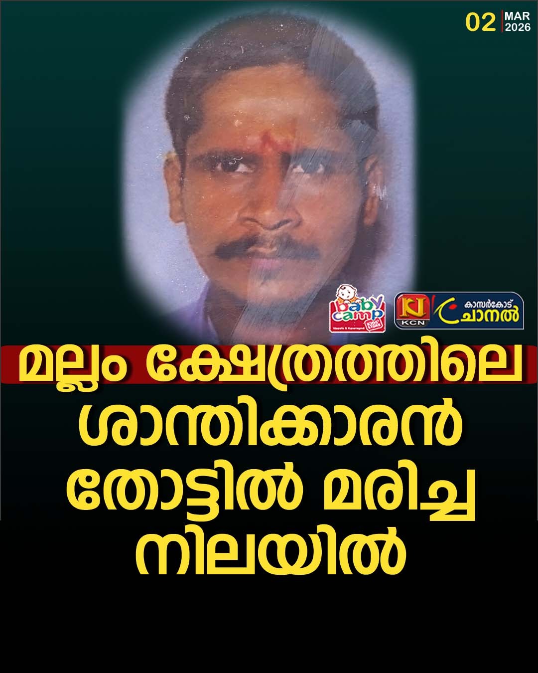 മല്ലം ക്ഷേത്രത്തിലെ ശാന്തിക്കാരന് തോട്ടില് മരിച്ച നിലയില്
