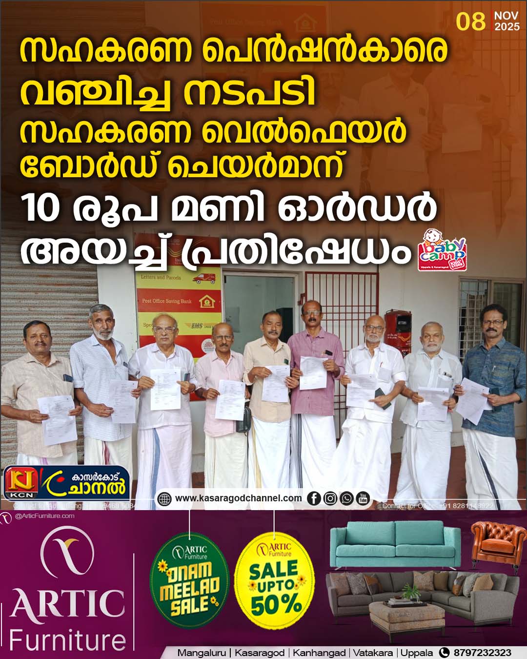 സഹകരണ പെന്ഷന്കാരെ വഞ്ചിച്ച നടപടി: സഹകരണ വെല്ഫെയര് ബോര്ഡ് ചെയര്മാന് 10 രൂപ മണി ഓര്ഡര് അയച്ച് പ്രതിഷേധം