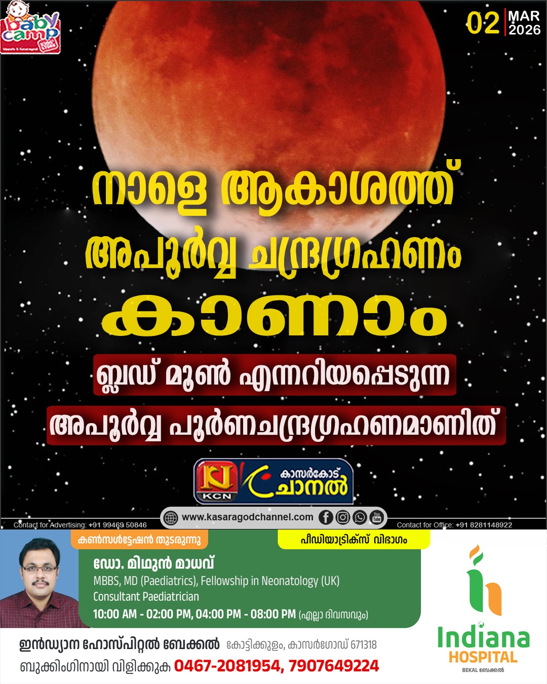 ആകാശ കാഴ്ചകള് എപ്പോഴും വിസ്മയമുണര്ത്തുന്നവയാണ്. ഓരോ കാഴ്ചകളും എപ്പോഴും മനോഹരവുമാണ്. അക്കൂട്ടത്തിലൊന്നാണ് ചന്ദ്രഗ്രഹണം. ഈ വര്ഷം മാര്ച്ച് 3 നാണ് 2026 ലെ ആദ്യത്തെ ബ്ലഡ് മൂണ് എന്നറിയപ്പെടുന്ന അപൂര്വ്വ ചന്ദ്രഗ്രഹണം സംഭവിക്കാന് പോകുന്നത്. ഇന്ത്യയുടെ പല ഭാഗങ്ങളിലും ഈ അപൂര്വ്വ ആകാശ വിസ്മയം ദൃശ്യമാകും.