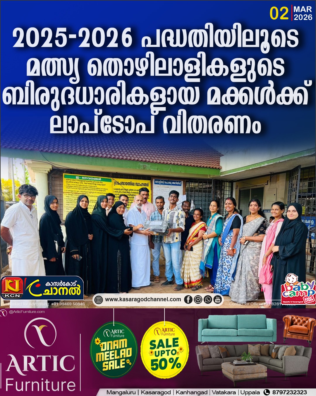 മൊഗ്രാല് പുത്തൂര് ഗ്രാമ പഞ്ചായത്തിന്റെ 2025-2026 വാര്ഷിക പദ്ധതിയില് ഉള്പ്പെടുത്തി മത്സ്യ തൊഴിലാളികളുടെ ബിരുദധാരികളായ മക്കള്ക്ക് ലാപ്ടോപ് വിതരണം നടത്തി.