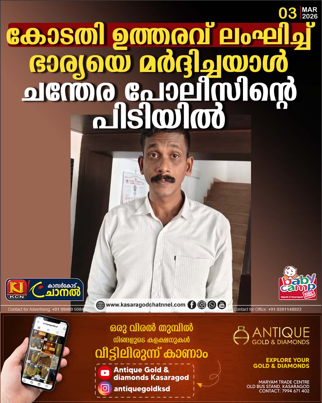 കോടതി ഉത്തരവ് ലംഘിച്ച് ഭാര്യയെ മര്ദ്ദിച്ചയാള് ചന്തേര പോലീസിന്റെ പിടിയില്