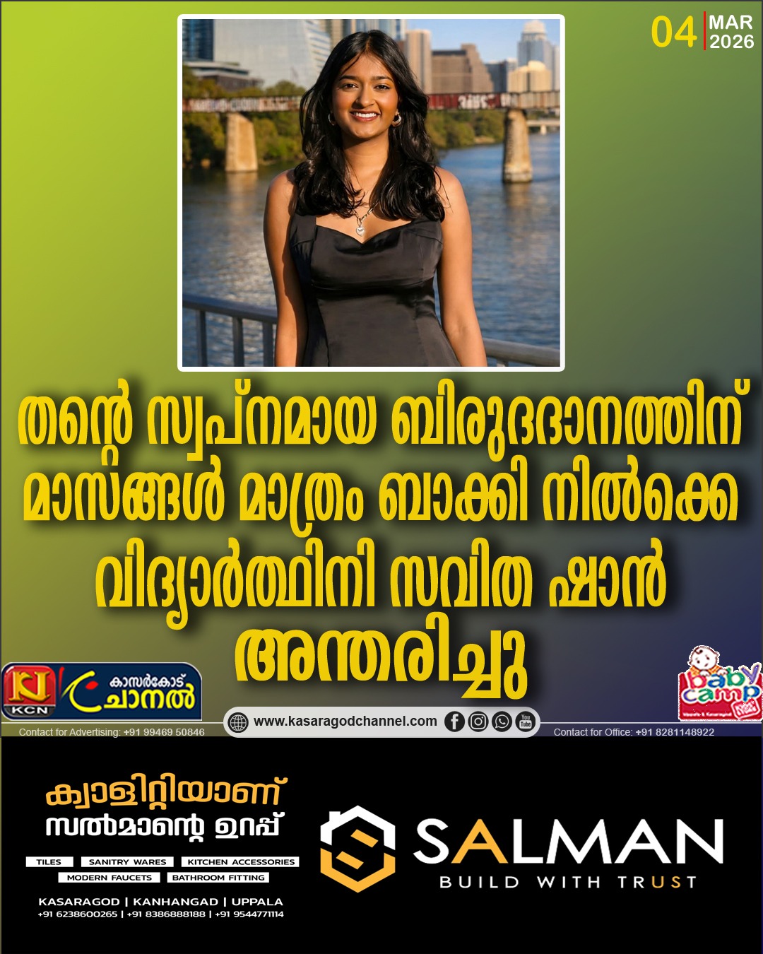 തന്റെ, സ്വപ്നമായ, ബിരുദദാനത്തിന് മാസങ്ങള് മാത്രം ബാക്കി നില്ക്കെ വിദ്യാര്ത്ഥിനി സവിത ഷാന് അ,ന്തരിച്ചു…
