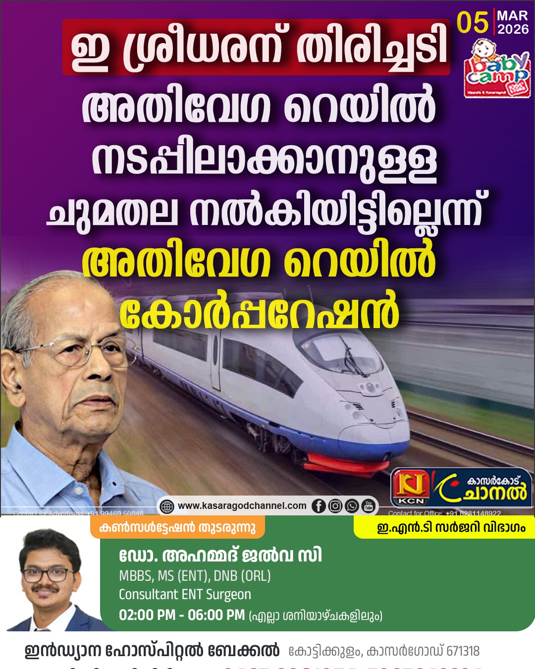 ഇതോടെ കേന്ദ്ര അനുമതിയും, ഹൈ സ്പീഡ് റെയില് കോര്പറേഷന്റെയും അനുമതിയില്ലാതെ ശ്രീധരന് ഓഫീസ് തുറന്നത് എന്തിനാണ് എന്ന ചോദ്യമാണ് ഉയരുന്നത്. നേരത്തെ റെയില്വേ മന്ത്രി അശ്വിനി വൈഷ്ണവും ശ്രീധരന്റെ ചുമതലയെക്കുറിച്ച് കൃത്യമായ മറുപടി നല്കാതെ ഒഴിഞ്ഞുമാറിയിരുന്നു. രാജ്യസഭയില് എംപിമാരായ ഹാരിസ് ബീരാനും ജോണ് ബ്രിട്ടാസും ഉന്നയിച്ച ചോദ്യത്തിനായിരുന്നു അശ്വിനി വൈഷ്ണവ് വ്യക്തതയില്ലാത്ത മറുപടി നല്കി ഒഴിഞ്ഞുമാറിയത്.