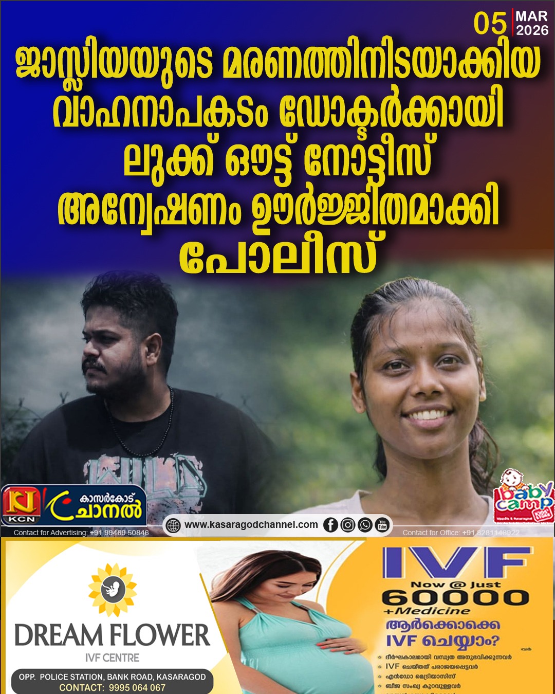 ജാസ്ലിയയുടെ മരണത്തിനിടയാക്കിയ വാഹനാപകടം ; ഡോക്ടര്ക്കായി ലുക്ക് ഔട്ട് നോട്ടീസ്, അന്വേഷണം ഊര്ജ്ജിതമാക്കി പോലീസ്