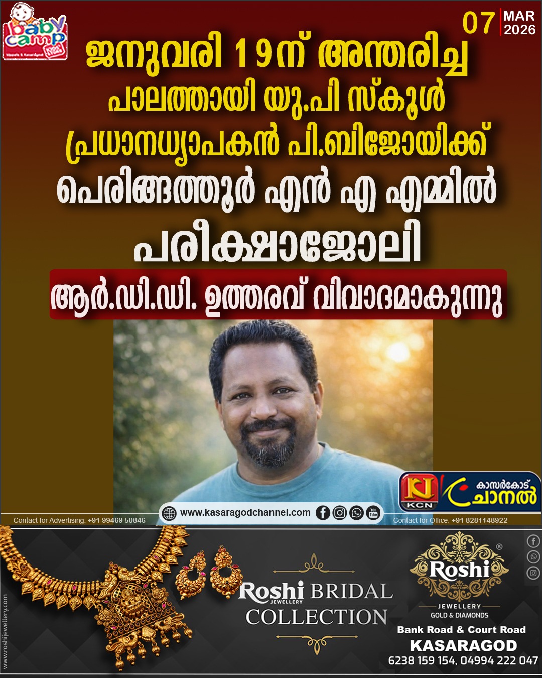 ജനുവരി 19ന് അന്തരിച്ച പാലത്തായി യു.പി സ്കൂള് പ്രധാനധ്യാപകന് പി.ബിജോയിക്ക് പെരിങ്ങത്തൂര് എന് എ എമ്മില് പരീക്ഷാജോലി ; ആര്.ഡി.ഡി. ഉത്തരവ് വിവാദമാകുന്നു