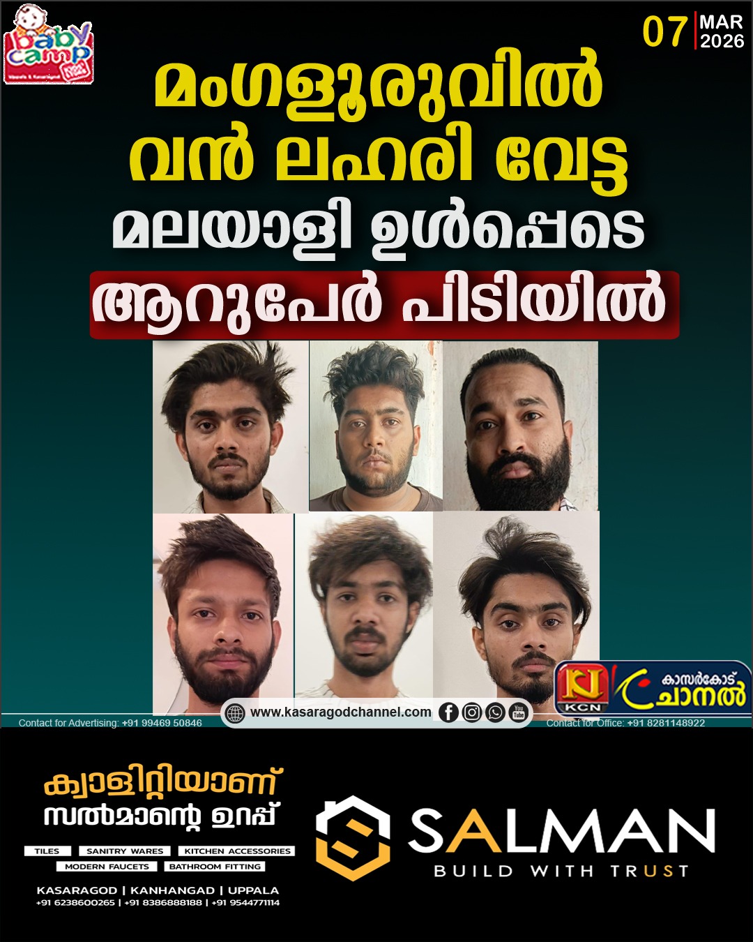 മംഗളൂരുവില് വന് രാസ ലഹരി വേട്ട.വിദേശത്തുനിന്നെ ത്തിച്ച ലഹരിവ സ്തുക്കളുമായി മലയാളി ഉള്പ്പെടെ ആറുപേര് അറസ്റ്റില്. കോട്ടയം സ്വദേശി ഫെലിക്സ് പി. ജോസഫ് ,