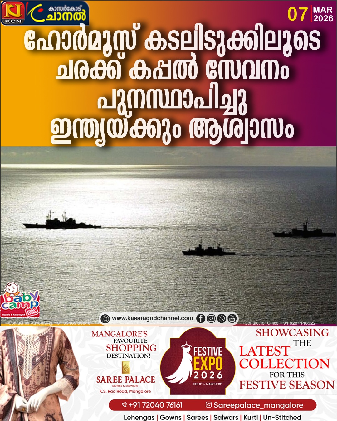 ഹോര്മൂസ് കടലിടുക്കിലൂടെ ചരക്ക് കപ്പല് സേവനം പുനസ്ഥാപിച്ച് ഇറാന്. അയല് രാജ്യങ്ങള്ക്ക് നേരെ ആക്രമണമില്ലെന്ന് ഇറാന് പ്രഖ്യാപിച്ചതിനെ തുടര്ന്നാണ് നടപടി. ?ഗള്ഫ് രാജ്യങ്ങളിലേക്ക് വരും ദിവസങ്ങളില് കൂടുതല് ചരക്കുകപ്പലുകളെത്തും. എന്നാല് അമേരിക്ക, ഇസ്രയേല്, യൂറോപ് രാജ്യങ്ങളിലെ കപ്പലുകള് ഹോര്മൂസ് കടലിടുക്കിലൂടെ കടത്തി വിടില്ലെന്ന് ഇറാന് പ്രഖ്യാപിച്ചു. ?ഗള്ഫില് നിന്നും ഇന്ത്യയിലേക്ക് ഇന്ധനം കൊണ്ടുവരുന്നതിന് തടസമുണ്ടാകില്ല.