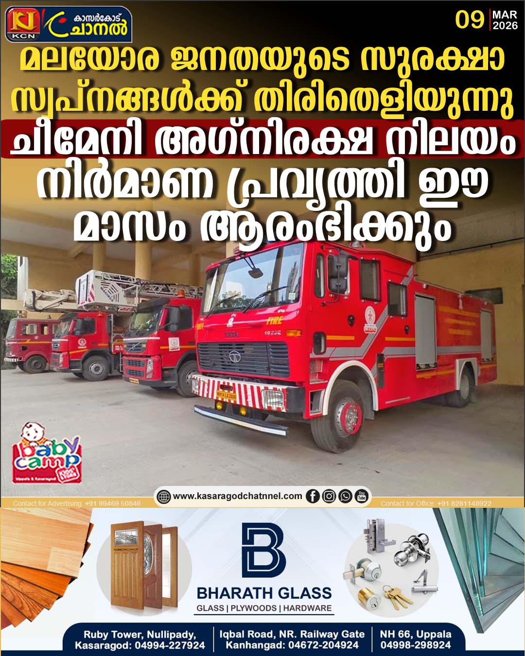 ചെറുവത്തൂര്: മലയോര ജനതയുടെ ദീര്ഘകാലമായുള്ള സുരക്ഷ സ്വപ്നങ്ങള്ക്ക് ചിറകുനല്കി ചീമേനി ഫയര് സ്റ്റേഷന് ഉടന് പ്രവര്ത്തനമാരംഭിക്കുന്നു. സ്റ്റേഷന് പ്രവര്ത്തനത്തിന് ആവശ്യമായ തസ്തികകള് സൃഷ്ടിക്കാന് സംസ്ഥാന മന്ത്രിസഭയോഗം തീരുമാനിച്ചു.