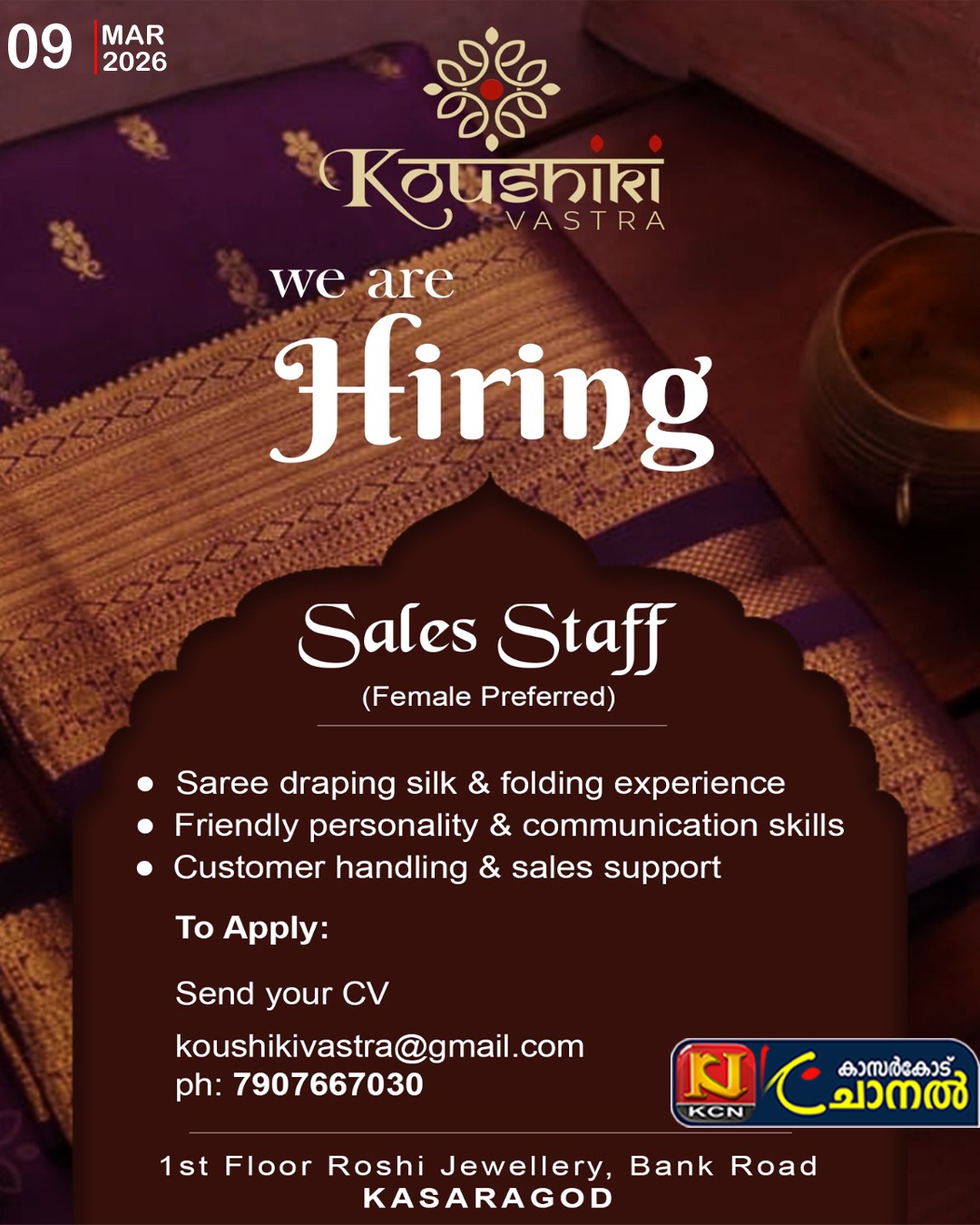 1 st floor Roshi Jewellery, Bank Road, kasaragod