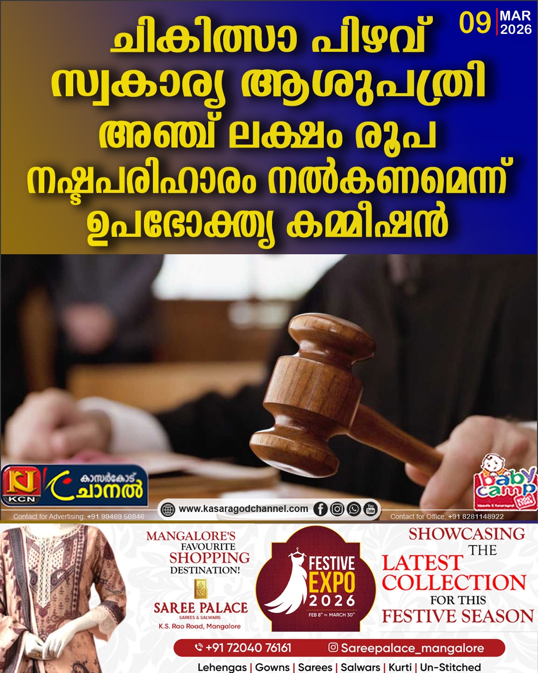 ചികിത്സാ പിഴവ്; സ്വകാര്യ ആശുപത്രി അഞ്ച് ലക്ഷം രൂപ നഷ്ടപരിഹാരം നല്കണമെന്ന് ഉപഭോക്തൃ കമ്മീഷന്