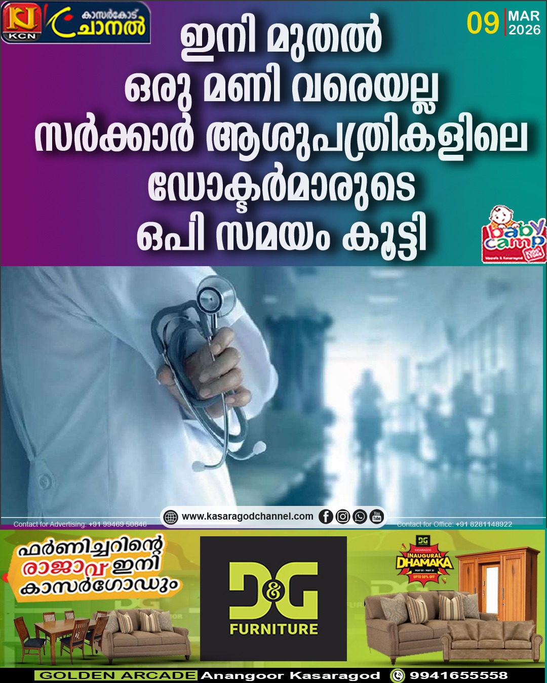 ഇനി മുതല് ഒരു മണി വരെയല്ല; സര്ക്കാര് ആശുപത്രികളിലെ ഡോക്ടര്മാരുടെ ഒപി സമയം കൂട്ടി