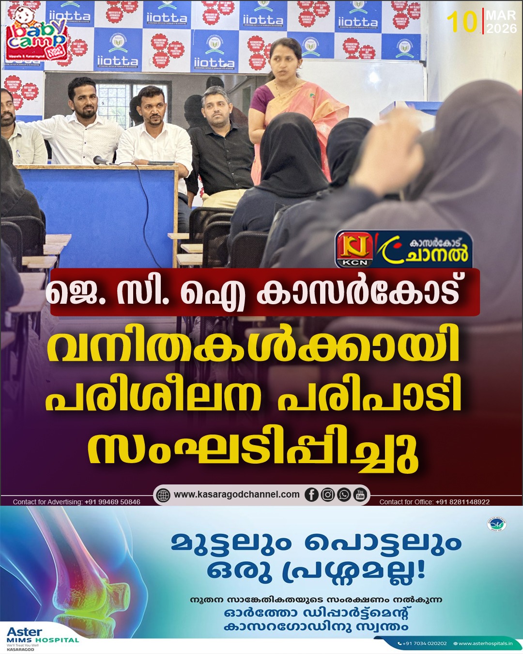 കാസര്ഗോഡ് : അന്താരാഷ്ട്ര വനിതാ ദിനാഘോഷത്തിന്റെ ഭാഗമായി ജെ.സി.ഐ കാസര്ഗോഡ് വനിതകള്ക്കായി വുമനിയ എന്ന പേരില് കാസര്ഗോഡ് അയോട്ട ഇന്സ്റ്റിട്ട്യൂട്ടില് വെച്ച് പരിശീലന പരിപാടി സംഘടിപ്പിച്ചു. ജെ.സി.ഐ കാസര്ഗോഡ് മുന് പ്രസിഡണ്ട് ഉമറുല് ഫാറൂഖ് മുഖ്യാതിഥിയായിരുന്നു. ജെ.സി.ഐ കാസര്ഗോഡ് പ്രസിഡണ്ട് നിസാര് തായല് അധ്യഷത വഹിച്ചു. സി.കെ അജിത്ത്കുമാര് സംസാരിച്ചു. പ്രോഗ്രാം ഡയറക്ടര് എ.എം ശിഹാബുദ്ദീന് സ്വാഗതവും എം. മഖ്സൂസ് നന്ദിയും പറഞ്ഞു. ഡോ. ശ്രുതി പണ്ഡിറ്റ് പരിശീലനത്തിന് നേതൃത്വം നല്കി.