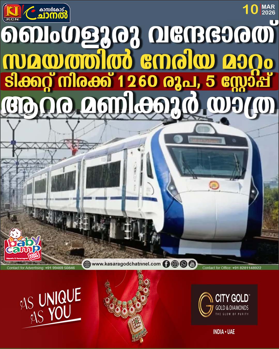 സൗത്ത് വെസ്റ്റേണ് റെയില്വെ സോണിന് കീഴിലാണ് ബെംഗളൂരു-കോയമ്പത്തൂര് വന്ദേഭാരത് സര്വീസ് നടത്തുന്നത്. 20642/20641 എന്നീ നമ്പറുകളില് ഒരു ജോഡി വന്ദേഭാരത് ആണ് നിലവില് ഓടുന്നത്. ഈറോഡ്, സേലം വഴി 377 കിലോമീറ്ററുള്ള ഈ സര്വീസ് 6.20 മിനുട്ടിലാണ് യാത്ര പൂര്ത്തിയാക്കുന്നത്. ഈ സര്വീസ് സംബന്ധിച്ച വിശദ വിവരങ്ങള് അറിയാം….