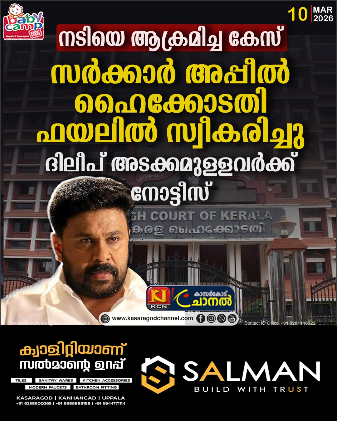 കൊച്ചി: കൊച്ചിയില് നടിയെ ആക്രമിച്ച കേസില് വിചാരണക്കോടതി വിധിക്കെതിരായ സംസ്ഥാന സര്ക്കാരിന്റെ അപ്പീല് ഹൈക്കോടതി ഫയലില് സ്വീകരിച്ചു. നടന് ദിലീപ് ഉള്പ്പെടെയുള്ള പ്രതികള്ക്ക് കോടതി നോട്ടീസ് അയച്ചു. ഹൈക്കോടതി ഡിവിഷന് ബെഞ്ചിന്റേതാണ് നടപടി. കേസിലെ പ്രതിയായിരുന്ന ദിലീപ് ഉള്പ്പെടെയുള്ളവരെ വെറുതെ വിട്ട എറണാകുളം പ്രിന്സിപ്പല് സെഷന്സ് കോടതിയുടെ വിധി റദ്ദാക്കണമെന്നും പള്സര് സുനി ഉള്പ്പടെയുള്ള കുറ്റവാളികളുടെ ശിക്ഷ വര്ദ്ധിപ്പിക്കണമെന്നും ആവശ്യപ്പെട്ടാണ് പ്രോസിക്യൂഷന് ഹൈക്കോടതിയെ സമീപിച്ചത്. വിചാരണക്കോടതിയുടെ ഗുരുതര വീഴ്ചകള് ചൂണ്ടിക്കാണിച്ചുള്ള 300 പേജുള്ള അപ്പീലിലാണ് ഹൈക്കോടതിയുടെ നിര്ണായക നീക്കം.