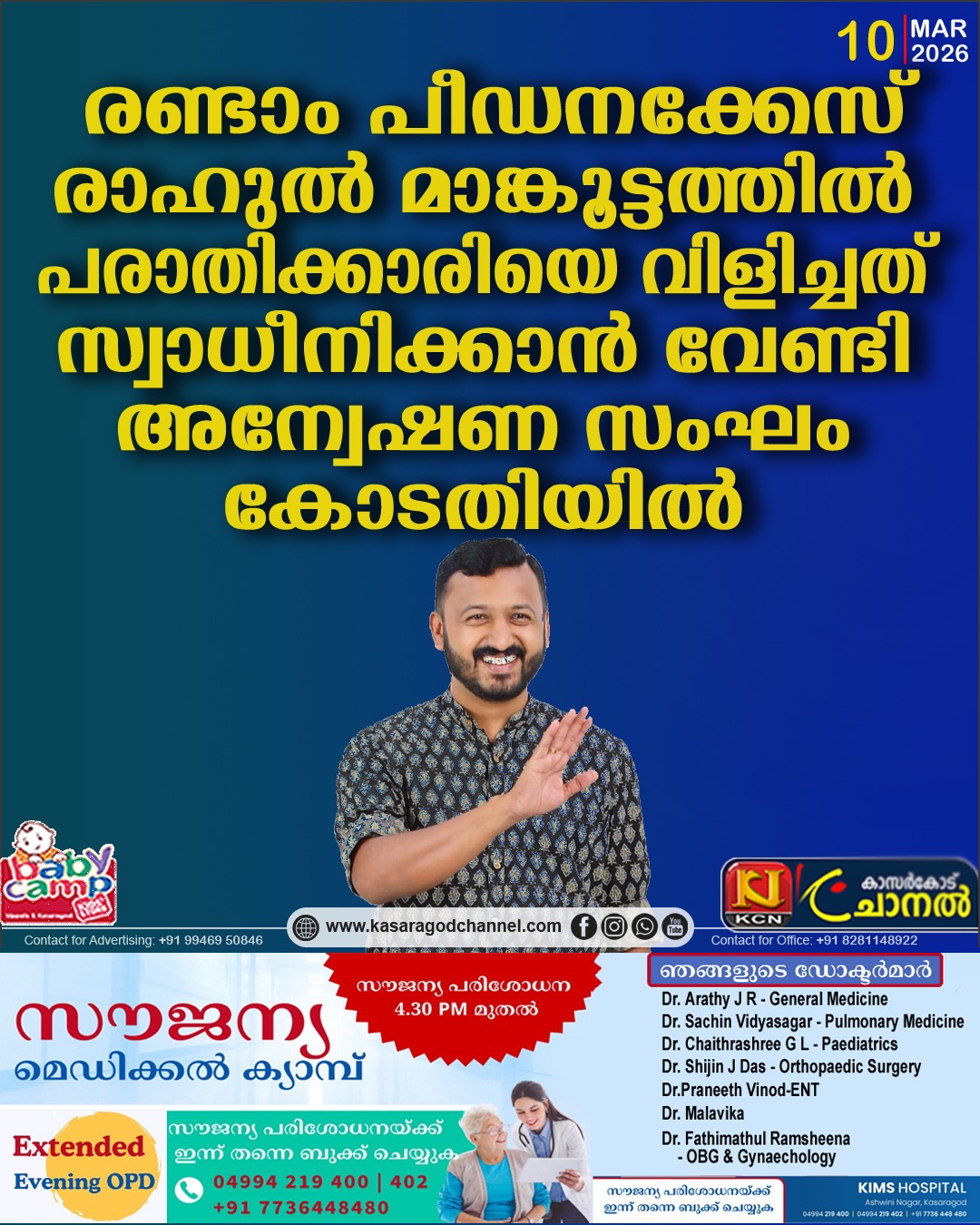 രണ്ടാം പീഡനക്കേസ്; ‘രാഹുല് മാങ്കൂട്ടത്തില് പരാതിക്കാരിയെ വിളിച്ചത് സ്വാധീനിക്കാന് വേണ്ടി’; അന്വേഷണ സംഘം കോടതിയില്