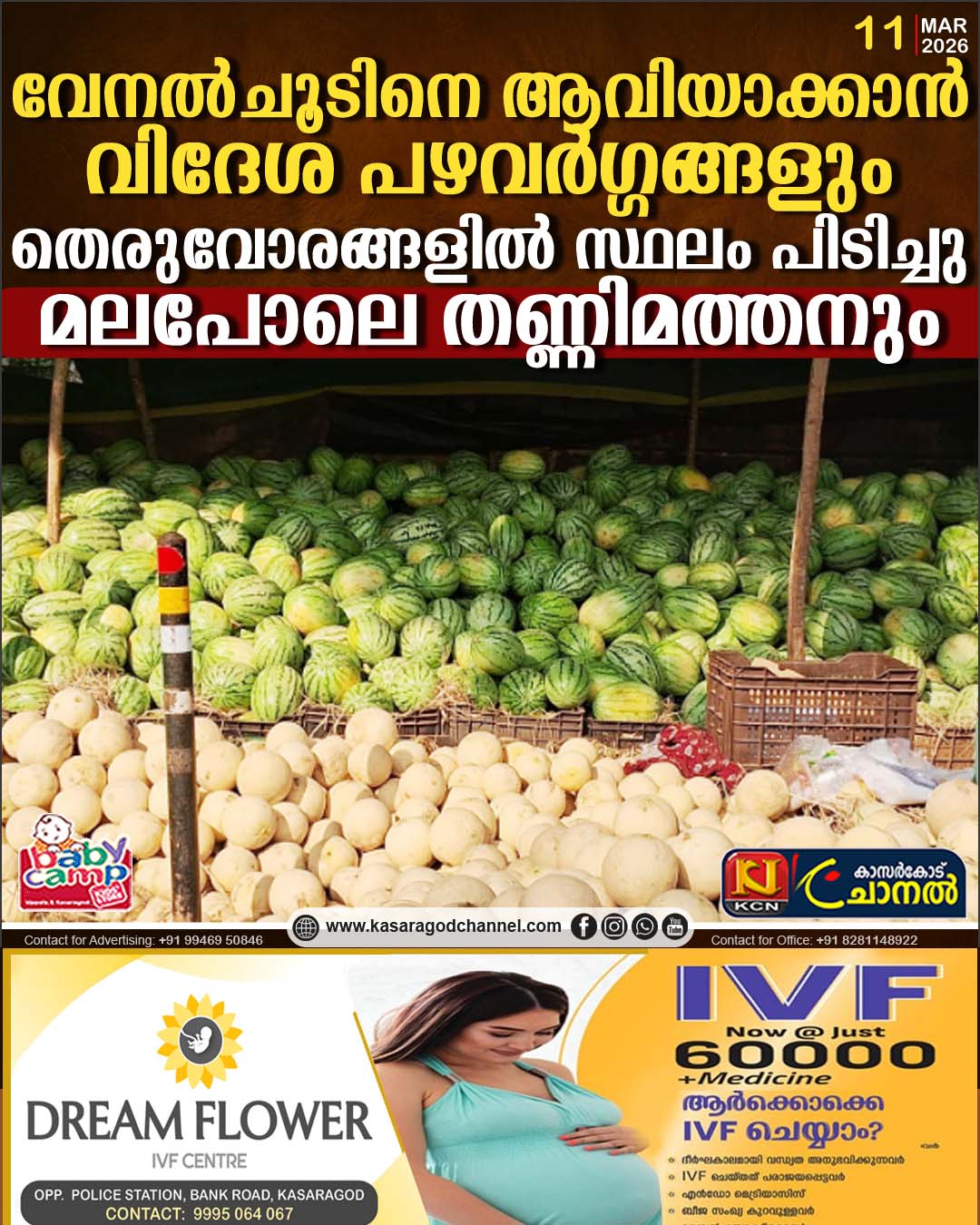 വേനല്ചൂടിനെ ആവിയാക്കാന് വിദേശ പഴവര്ഗ്ഗങ്ങളും തെരുവോരങ്ങളില് സ്ഥലം പിടിച്ചു; മലപോലെ തണ്ണിമത്തനും