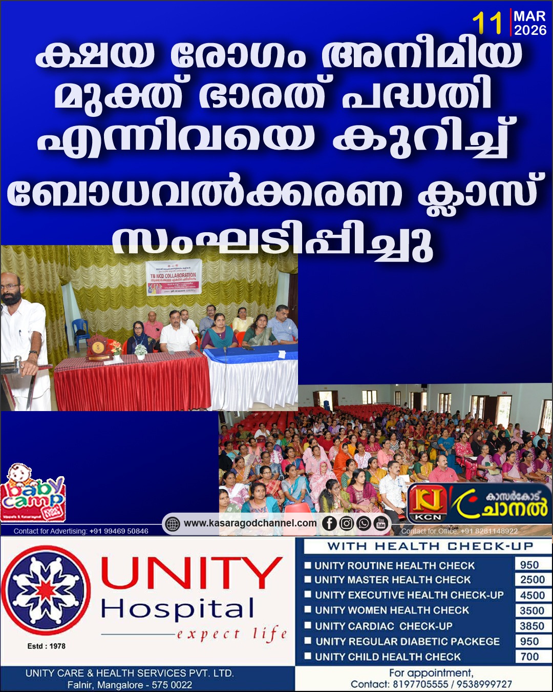 ബോവിക്കാനം:- ജീവിത ശൈലിയിലൂടെ ഉണ്ടാകുന്ന ക്ഷയ രോഗം , അനീമിയ മുക്ത് ഭാരത് പദ്ധതി എന്നിവയെ കുറിച്ച് ബോധവല്ക്കരണ ക്ലാസ് സംഘടിപ്പിച്ചു.