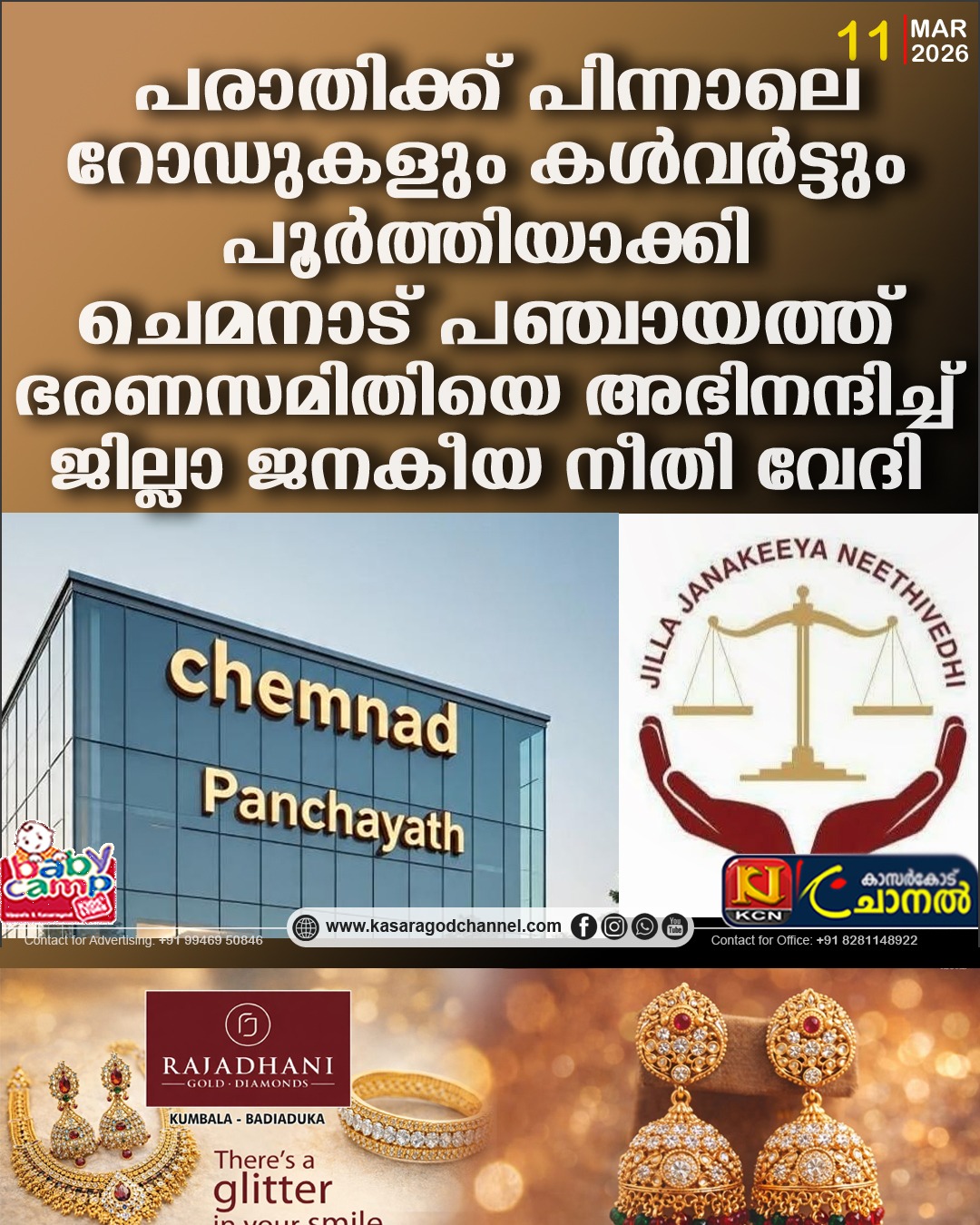 പരാതിക്ക് പിന്നാലെ റോഡുകളും കള്വര്ട്ടും പൂര്ത്തിയാക്കി: ചെമനാട് .പഞ്ചായത്ത് ഭരണസമിതിയെ അഭിനന്ദിച്ച് ജില്ലാ ജനകീയ നീതി വേദി