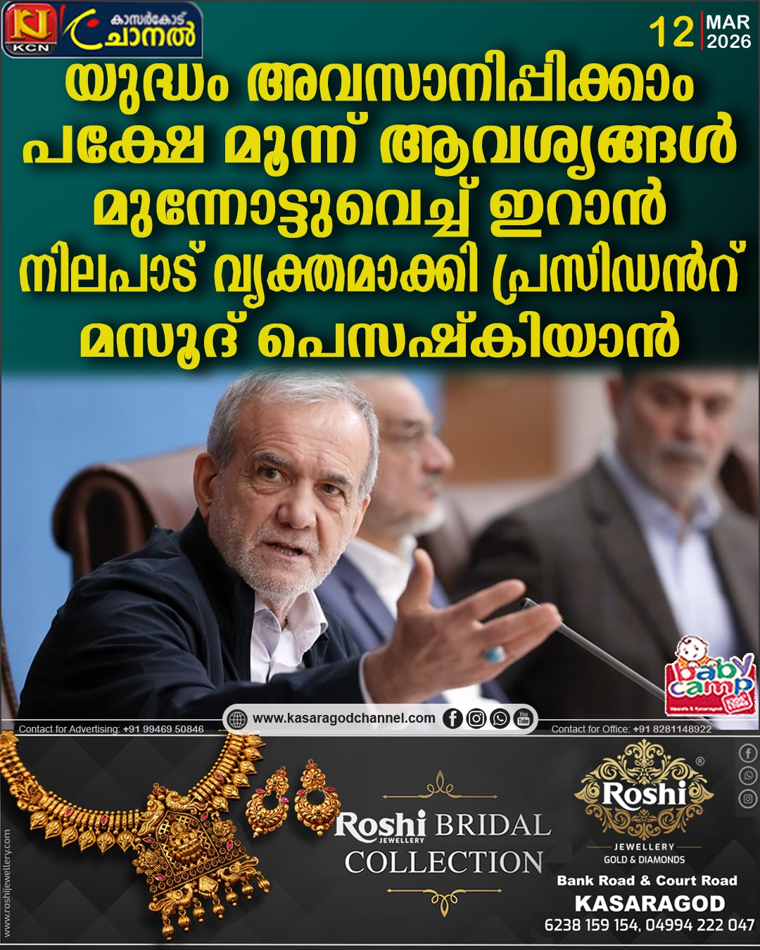 അമേരിക്കയും സയണിസ്റ്റ് ഭരണകൂടവുമാണ് ഈ യുദ്ധത്തിന് തിരികൊളുത്തിയതെന്ന് കുറ്റപ്പെടുത്തിയ പെസഷ്കിയാന്, മേഖലയിലെ സാമ്പത്തിക-സൈനിക കേന്ദ്രങ്ങള്ക്ക് നേരെയുള്ള തിരിച്ചടി തുടരുമെന്നും സൂചിപ്പിച്ചു. സമാധാനത്തോടുള്ള ഇറാന്റെ പ്രതിബദ്ധത ആവര്ത്തിക്കുന്നതിനായി റഷ്യന്, പാകിസ്ഥാന് നേതാക്കളുമായി അദ്ദേഹം ചര്ച്ചകള് നടത്തി. ഇതിനിടെ, മേഖലയിലെ സമാധാന നീക്കങ്ങളുടെ ഭാഗമായി പാകിസ്ഥാന് പ്രധാനമന്ത്രി ഷെഹബാസ് ഷെരീഫ് വ്യാഴാഴ്ച സൗദി അറേബ്യയിലേക്ക് ഹ്രസ്വ സന്ദര്ശനം നടത്തുന്നതായും റിപ്പോര്ട്ടുകളുണ്ട്. ഇറാന്റെ ഈ പുതിയ നീക്കം അന്താരാഷ്ട്ര തലത്തില് വലിയ നയതന്ത്ര ചര്ച്ചകള്ക്ക് വഴിതുറന്നിരിക്കുകയാണ്.