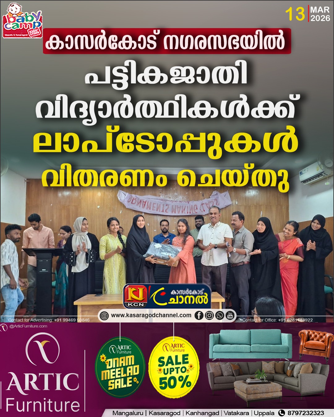 കാസര്കോട് നഗരസഭയില് പട്ടികജാതി വിദ്യാര്ത്ഥികള്ക്ക് ലാപ്ടോപ്പുകള് വിതരണം ചെയ്തു