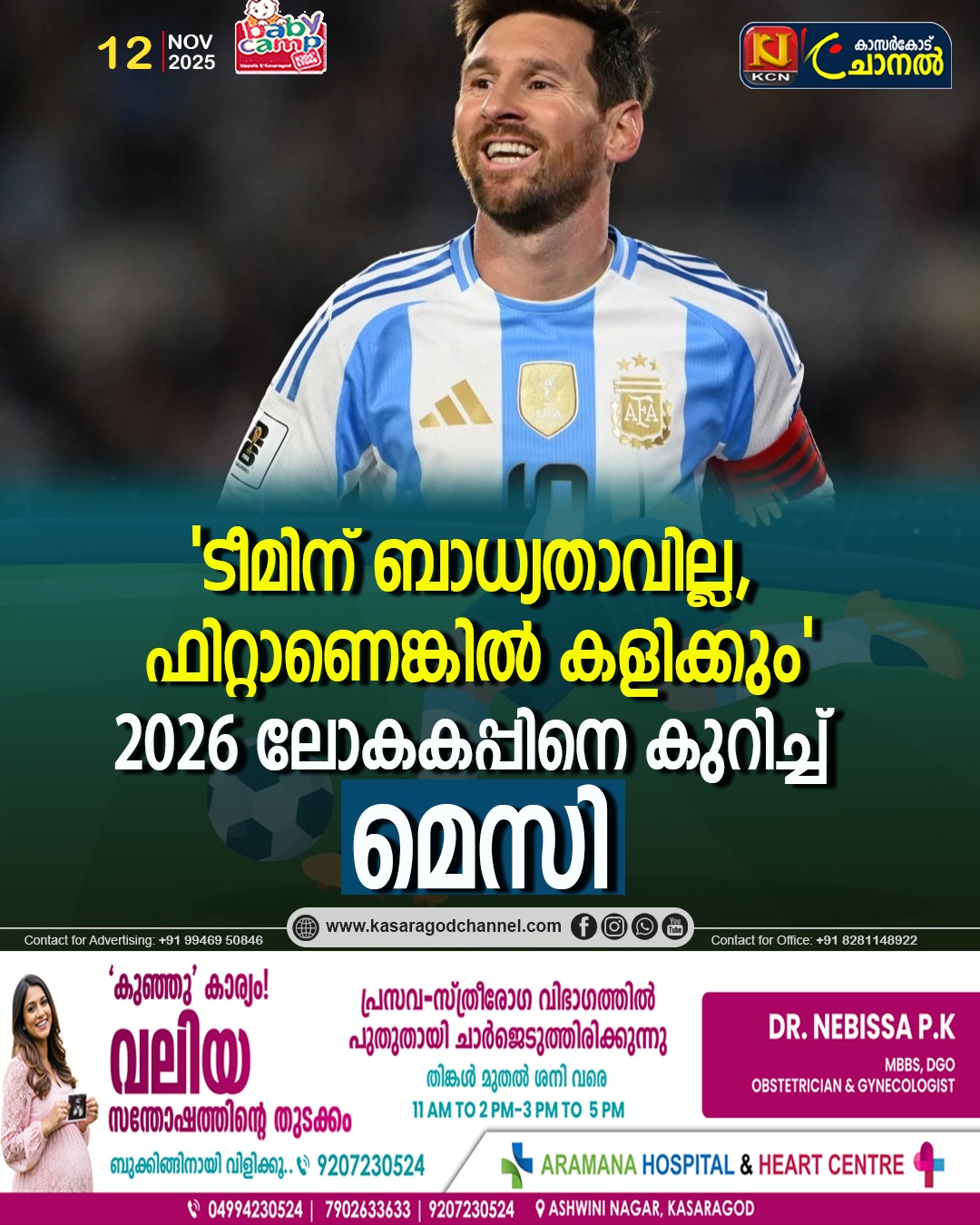 2026 ഫിഫ ലോകകപ്പില് അര്ജന്റീന ടീമിനായി കളിക്കാന് ആഗ്രഹമുണ്ടെന്ന് ലയണല് മെസി. എന്നാല് പൂര്ണ ആരോഗ്യവാനാണെങ്കില് മാത്രമെ ലോകകപ്പില് കളിക്കൂവെന്നും ടീമിന് ബാധ്യതയാവാന് താന് ആഗ്രഹിക്കുന്നില്ലെന്നും മെസി പറഞ്ഞു.