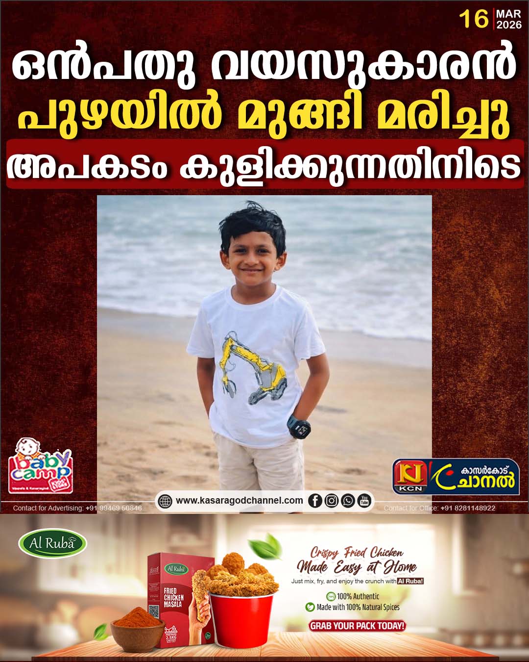 കണ്ണൂര് : മാതമംഗലം കുറ്റൂരില് ഒന്പതു വയസുകാരന് പുഴയില് മുങ്ങിമ,രിച്ചു.കുറ്റൂര്ജി യു പി സ്കൂള് രണ്ടാംതരം വിദ്യാര്ത്ഥി ഷസാദാണ് മ,രിച്ചത്.കുറ്റൂര് സ്വദേശിയും ദുബായ് കെഎംസിസി പയ്യന്നൂര് മണ്ഡലം വൈസ് പ്രസിഡഡന്റുമായ എം കെ പി ഷെഫീക്കിന്റെയും എം.പി സാജിതയുടെയും മകനാണ് ഷസാദ്.