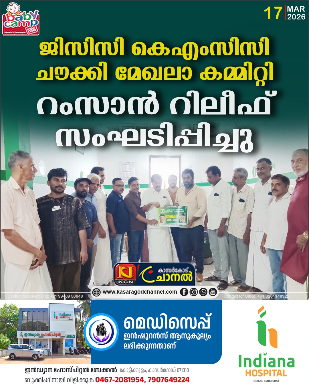 ചൗക്കി: ജിസിസി കെഎംസിസി ചൗക്കി മേഖലാ കമ്മിറ്റിയുടെ നേതൃത്വത്തില് മുസ്ലിം ലീഗ് ചൗക്കി ശാഖ കമ്മിറ്റി ഓഫീസില് റംസാന് റിലീഫ് വിതരണം സംഘടിപ്പിച്ചു. എന്.എ. നെല്ലിക്കുന്ന് എംഎല്എ പരിപാടി ഉദ്ഘാടനം ചെയ്തു.