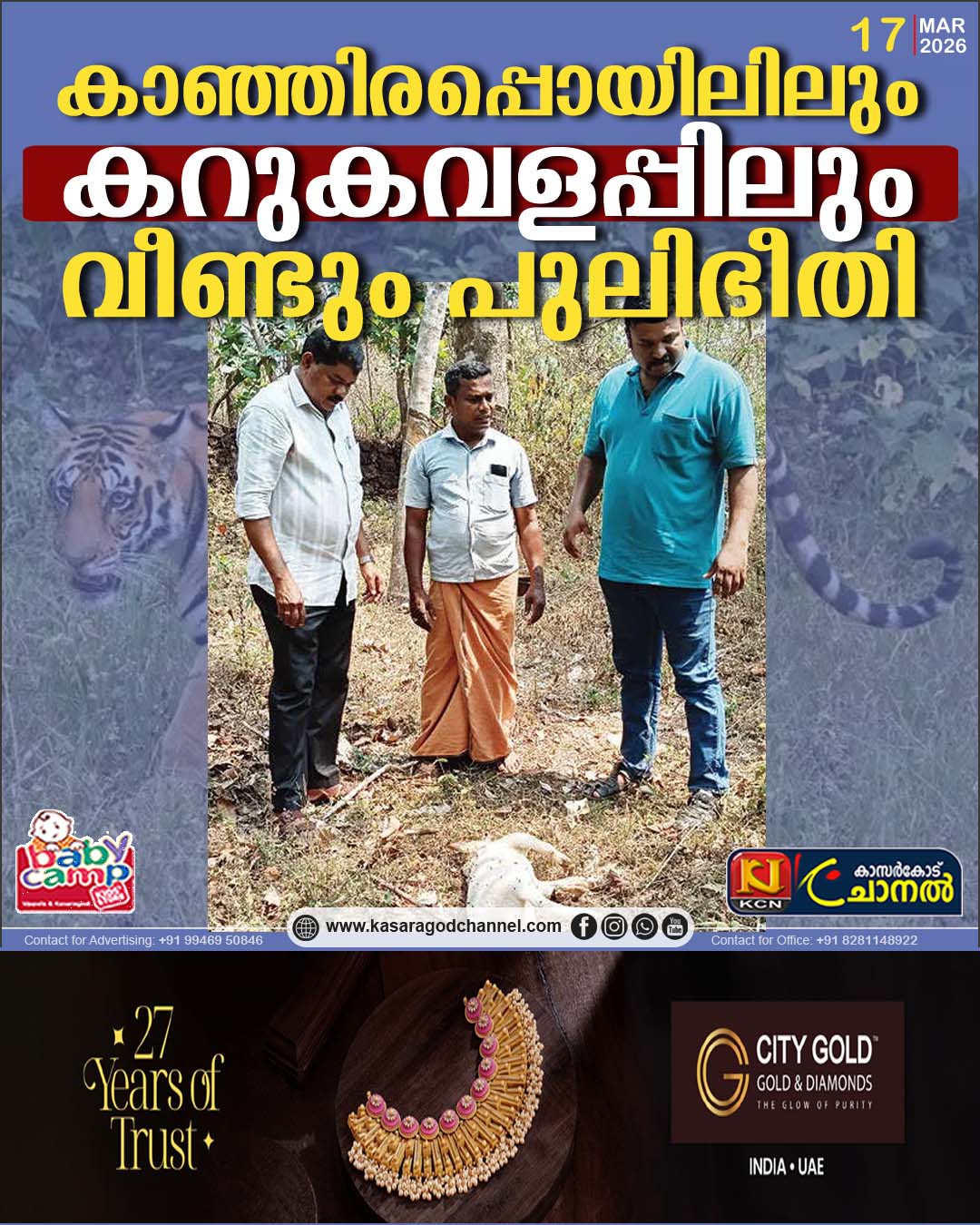 കാഞ്ഞിരപ്പൊയില്, കറുകവളപ്പ് പ്രദേശങ്ങള് വീണ്ടും പുലിഭിതിയില്.