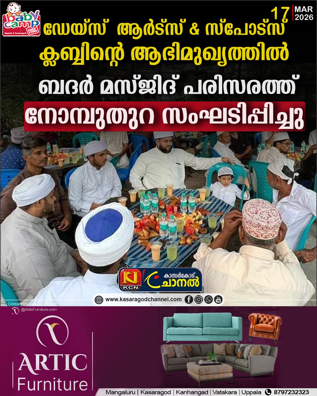 ഡേയ്സ് ആര്ട്സ് & സ്പോട്സ് ക്ലബ്ബിന്റെ ആഭിമുഖ്യത്തില് ബദര് മസ്ജിദ് പരിസരത്ത് നോമ്പുതുറ സംഘടിപ്പിച്ചു.