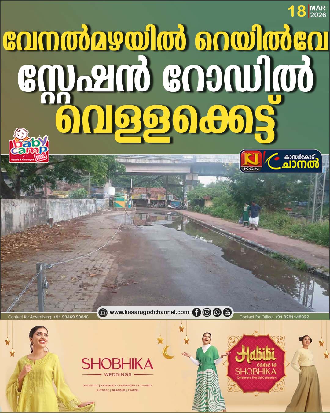 നിലവില് റെയില്വേ സ്റ്റേഷനില് നടന്നുവരുന്ന നിര്മാണപ്രവര്ത്തനത്തിന്റെ ഭാഗമായി സ്ഥിരമായി വെള്ളം കെട്ടിനില്ക്കുന്ന സ്ഥലങ്ങള് മണ്ണിട്ടുയര്ത്തി കോണ്ക്രീറ്റ് ചെയ്ത് ഉയര്ത്തിയിരിക്കുകയാണ്. ഇതുകാരണം നിലവിലെ റോഡ് വളരെ താഴ്ന്നനിലയിലാണ്. മഴ കനക്കുന്നതോടെ വെള്ളം കുത്തിയൊലിച്ച് റോഡിലൂടെ ഒഴുകാനുള്ള സാധ്യത വര്ധിച്ചിരിക്കുകയാണ്. ഇങ്ങനെ സംഭവിച്ചാല് കാല്നടയായും വാഹനത്തിലും റെയില്വേ സ്റ്റേഷനിലെത്താന് മഴക്കാലത്ത് വലിയ പ്രയാസമായിരിക്കും.