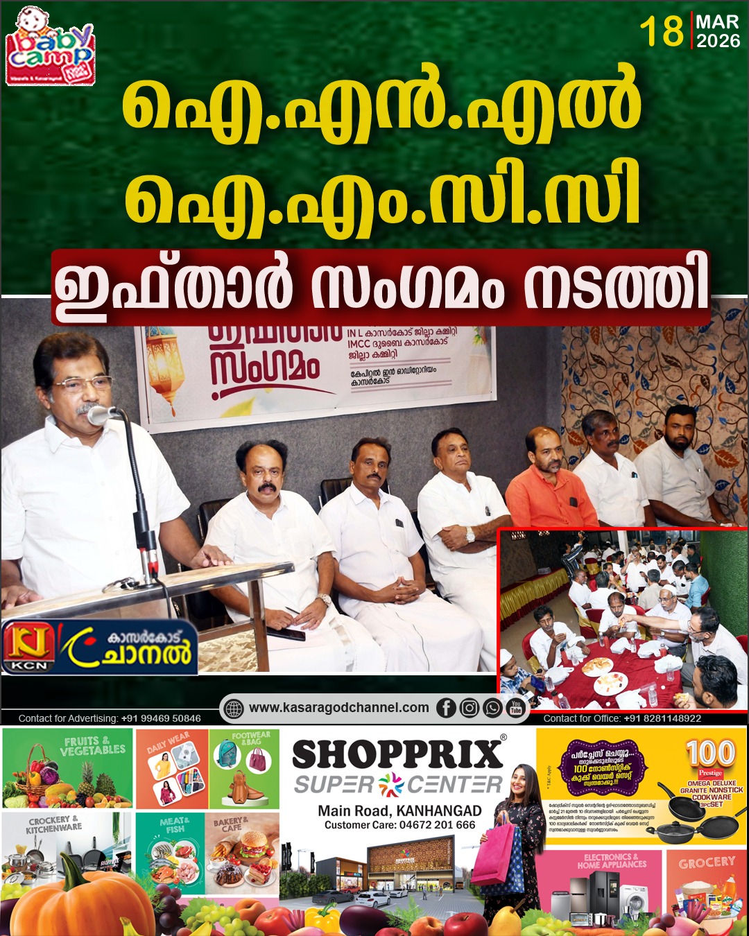 ഐ.എന് എല് കാസറകോട് ജില്ലാ .കമ്മിറ്റിയുടെയും ഐ.എം സി സി ദുബൈ കാസര്കോട് ജില്ലാ കമ്മിറ്റിയുടെയും സംയുക്താഭിമുഖ്യ.ത്തില് ഇഫ്താര് സംഗമം നടത്തി ഐ.എന്എല് .സംസ്ഥാന സെക്രട്ടറി എം എ .ലത്തീഫ് ഉദ്ഘാടനം ചെയ്തു. ജില്ലാ പ്രസിഡണ്ട് .എം ഹമീദ് ഹാജി അദ്ധ്യക്ഷത വഹിച്ചു. കെ.പി സി സി ജനറല് സെകട്ടറി ഹക്കീം കുന്നില് ,ഐ.എന് എല് സംസ്ഥാന വൈസ് പ്രസിഡണ്ട് മൊയ്തീന് കുഞ്ഞി കളനാട് . സി പി എം ജില്ലാ കമ്മിറ്റി അംഗം മുഹമ്മദ് ഹനീഫ,