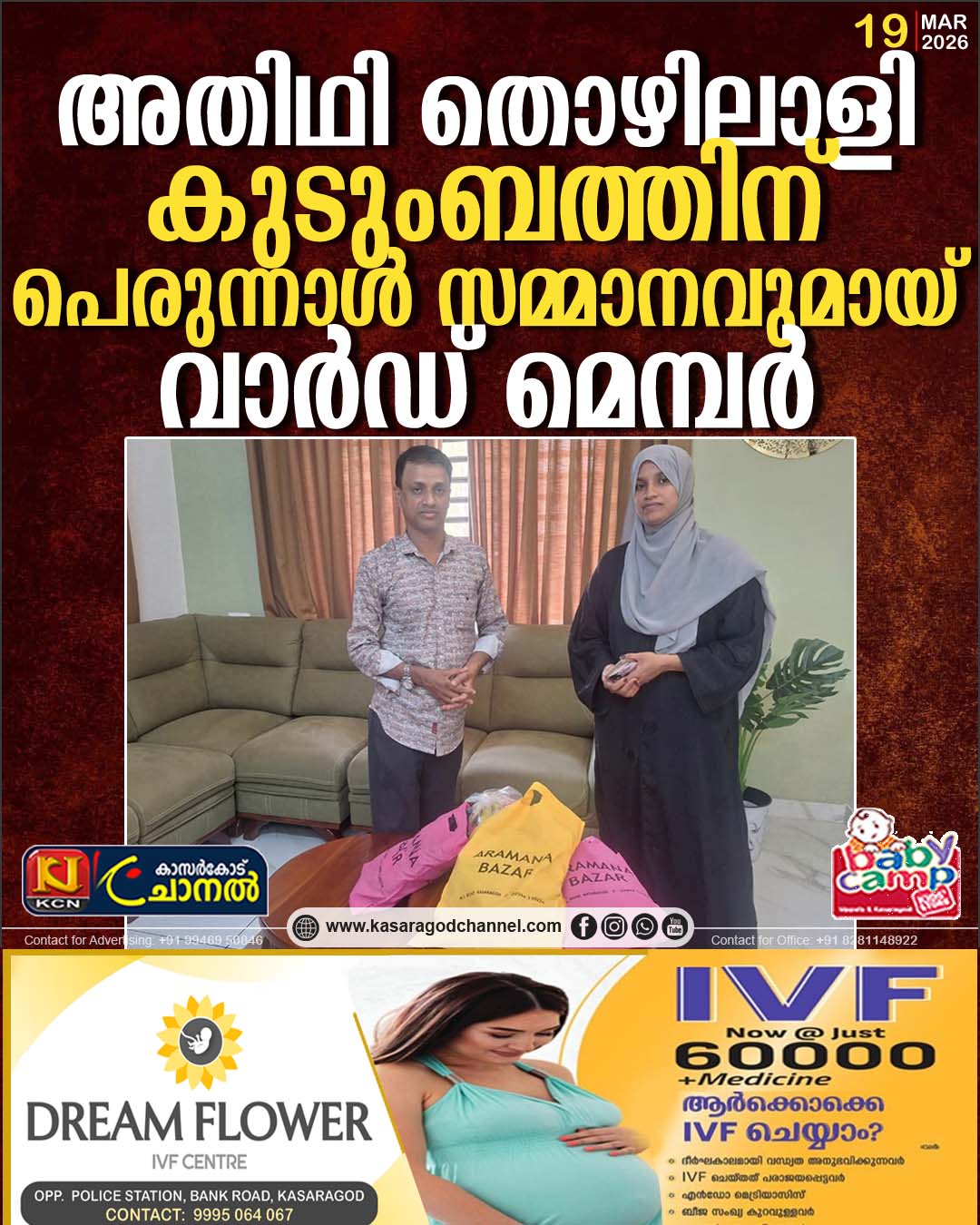 അതിഥി തൊഴിലാളി കുടുംബത്തിന് പെരുന്നാള് സമ്മാനവുമായ് വാര്ഡ് മെമ്പര്
