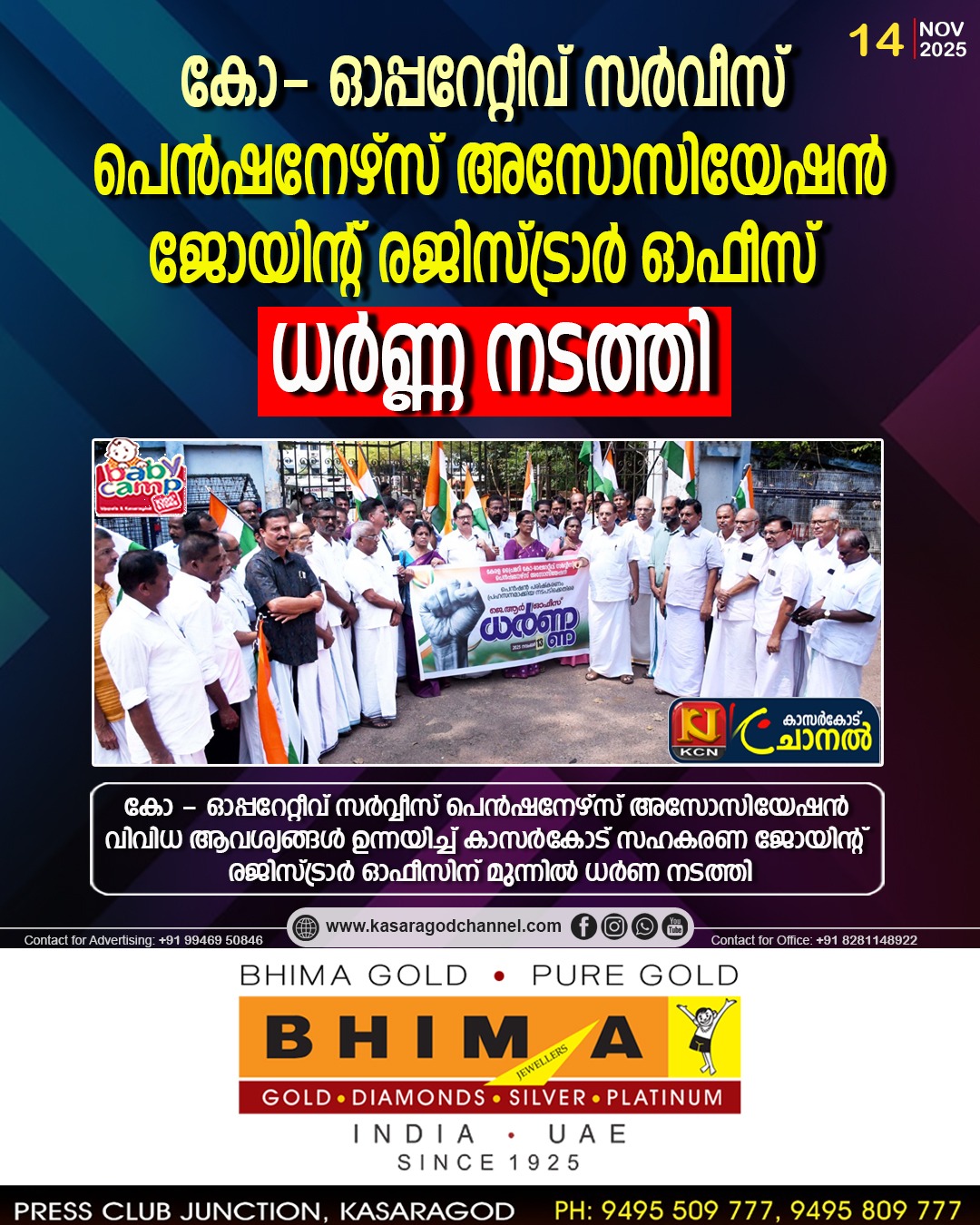കോ- ഓപ്പറേറ്റീവ് സര്വീസ് പെന്ഷനേഴ്സ് അസോസിയേഷന് ജോയിന്റ് രജിസ്ട്രാര് ഓഫീസ് ധര്ണ്ണ നടത്തി