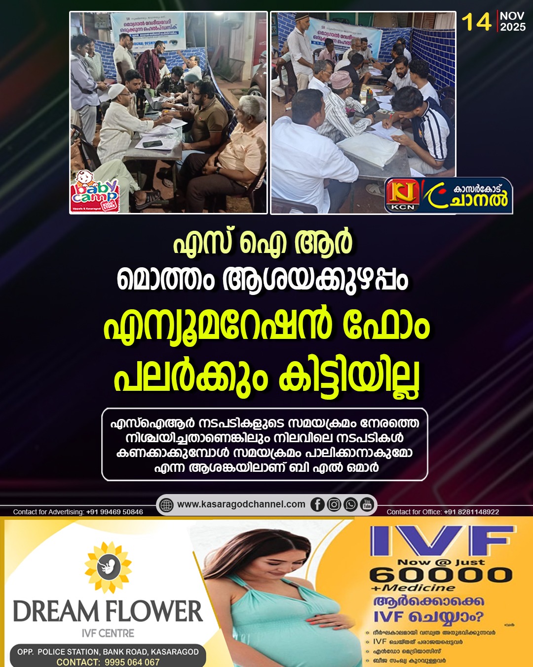 കാസര്കോട്: എസ്ഐആര് നടപടികളുടെ സമയക്രമം നേരത്തെ നിശ്ചയിച്ചതാണെങ്കിലും നിലവിലെ നടപടികള് കണക്കാക്കുമ്പോള് സമയക്രമം പാലിക്കാനാകുമോ എന്ന ആശങ്കയിലാണ് ബി എല് ഒമാര്. ഡിസംബര് 4 നകം ഫോം വിതരണം ചെയ്ത് പൂരിപ്പിച്ച ശേഷം തിരിച്ചു വാങ്ങണം. ഈ നടപടികള്ക്ക് ഒരു മാസമാണ് അനുവദിച്ചിട്ടുള്ളത്.